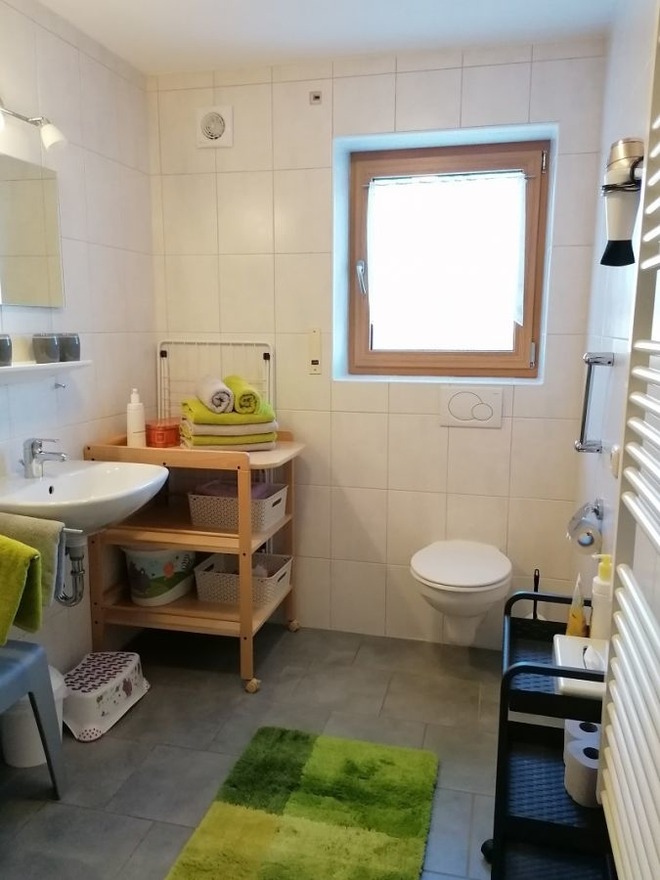 Die Küche ist voll ausgestattet (Geschirrspüler, Kühlschrank mit Gefrierfach, Ceranfeld mit Backofen, Mikrowelle, Kaffeemaschine, Toaster, Wasserkocher). Zwei Schlafzimmer mit Doppelbetten vom Schreiner gefertigt, mit Duo-Matratzen mit unterschiedlichen Härtegrade, Dusche/WC mit ebenerdiger Dusche zum bequemen Ein- und Ausstieg, Waschbecken, Wickelregal, Handtuchtrockner, Föhn.