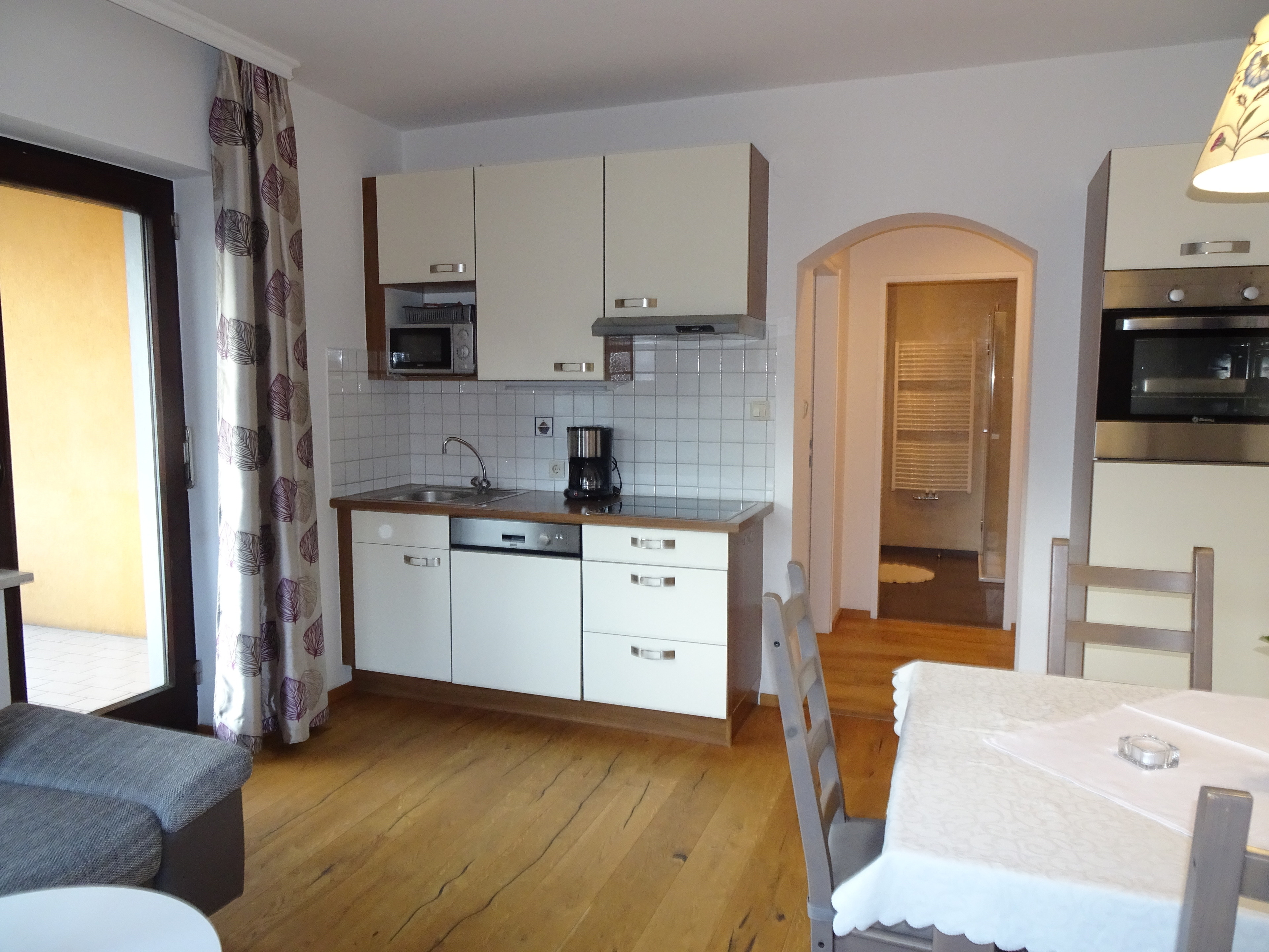 Das Appartement besteht aus einem Wohnraum mit Sitzcouch und Kochnische, einem Schlafraum mit Doppelbett, einem Schlafraum mit Doppelbett und einer Schlafcouch, Vorraum, Dusche/WC und Balkon.