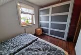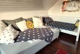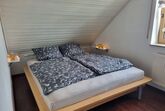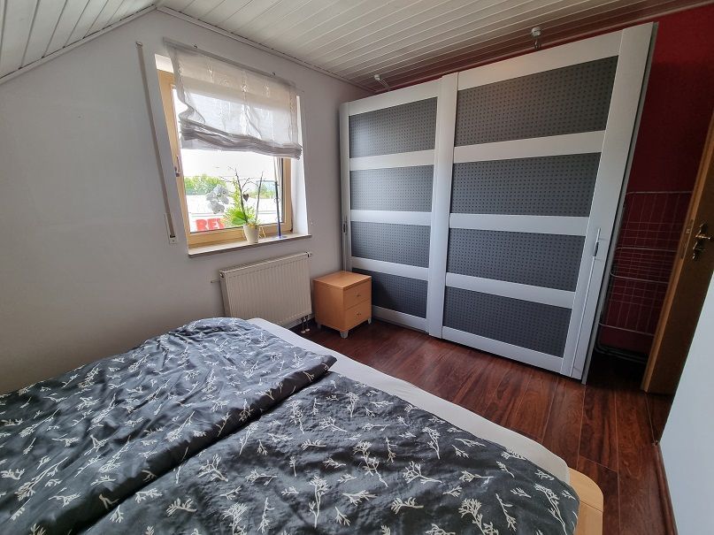 Das Schlafzimmer mit einem Doppelbett (180x200) ist zudem mit einem Kleiderschrank möbliert. Im Kinderzimmer befindet sich ein Sideboard für Kleidung und eine Schlafmöglichkeit für zwei Kinder (ggf. auch drei Kinder).