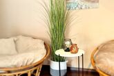 Das Wohnzimmer ist mit Sofa, Schrank, einer Entspannungsecke und TV ausgestattet. W-LAN und Sat-TV ist kostenfrei. Zudem ist eine mobile Klimaanlage vorhanden.