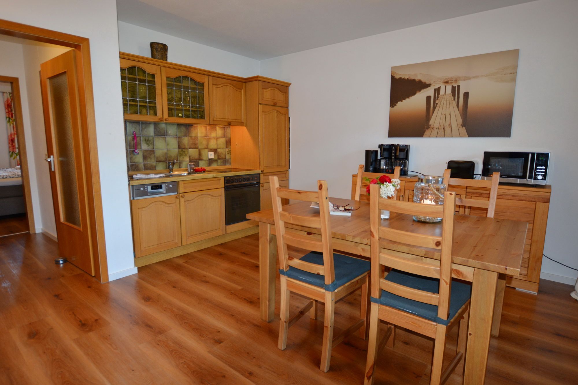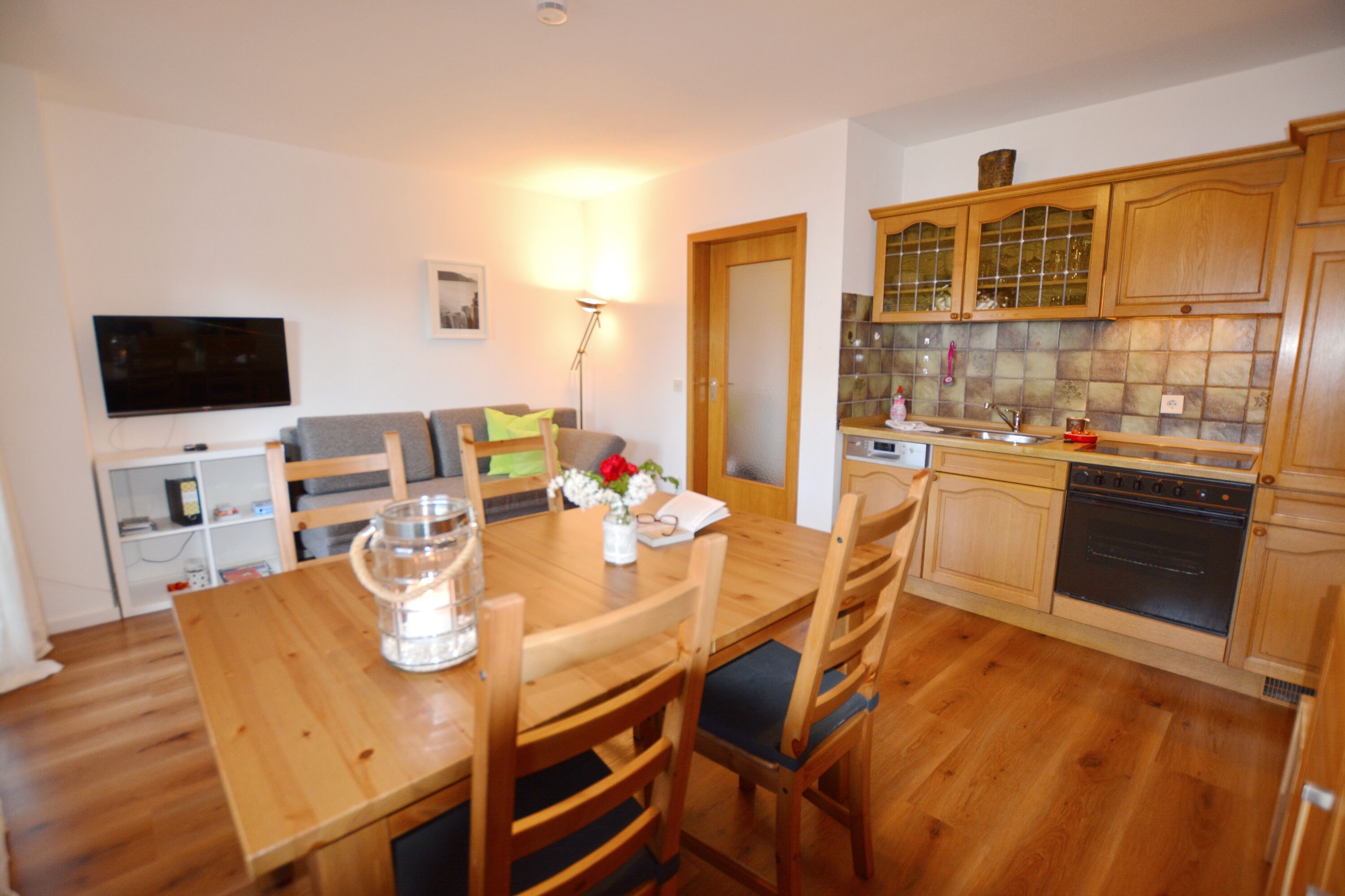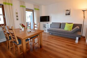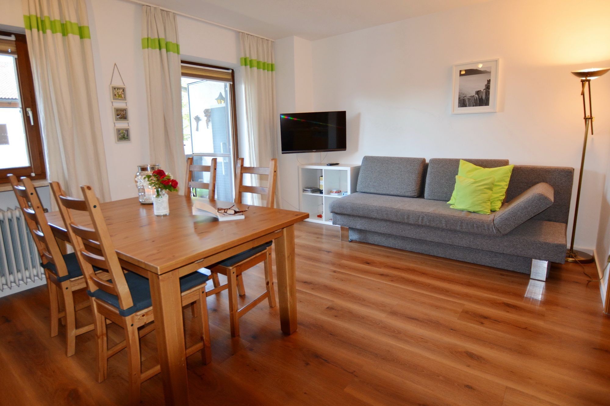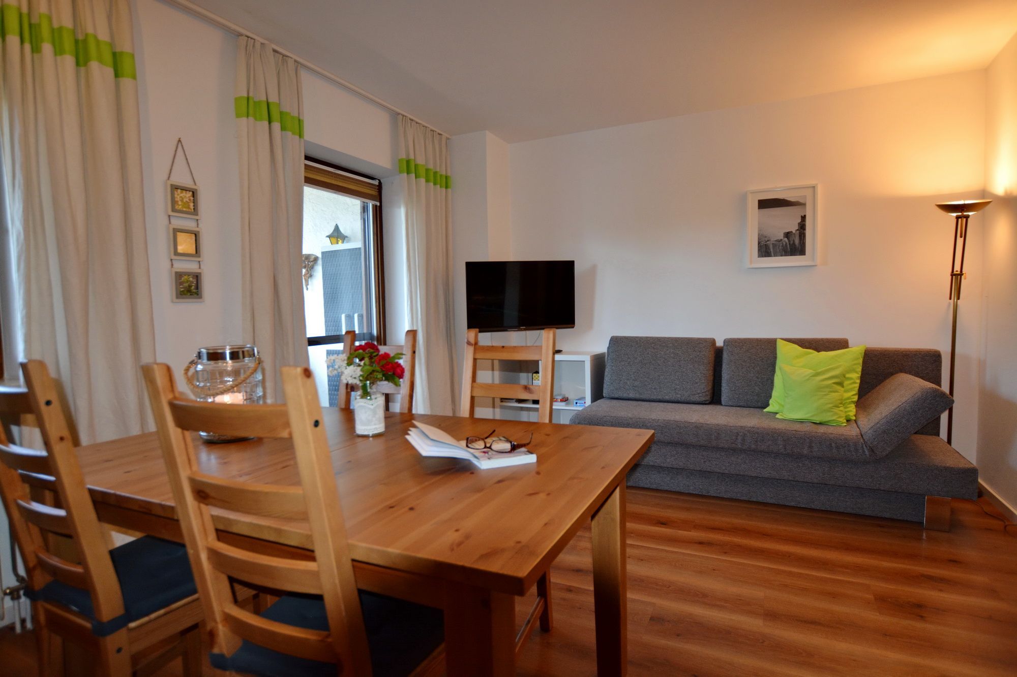 Die gemütliche 2-Zimmer-Wohnung für bis zu 3 Personen befindet sich im 1. Stock und verfügt über einen großen Süd-Ostbalkon. Schöne Stunden sind dort vorprogrammiert. Der geschmackvoll eingerichtete Wohnbereich bietet Ihnen eine offene Küche, ein Essbereich sowie ein Sofa für gemütliche Stunden. Neben dem Schlafzimmer mit Doppelbett (Boxspringbett) steht Ihnen im Wohnbereich das Schlafsofa bei Bedarf zur Verfügung. Das Badezimmer mit Dusche rundet dieses Apartment ab. Der pflegeleichte Boden in Holzoptik (Ausnahme Badezimmer) verleiht der ganzen Wohnung einen gemütlichen Charakter.