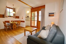 Über den Wohnbereich mit offener Küche und Essbereich können Sie den Südwest-Balkon mit einem fantastischen Blick über den See genießen. Neben dem Schlafzimmer mit Doppelbett steht Ihnen im Wohnzimmer das Schlafsofa bei Bedarf zur Verfügung. Das Badezimmer rundet dieses Apartment ab.