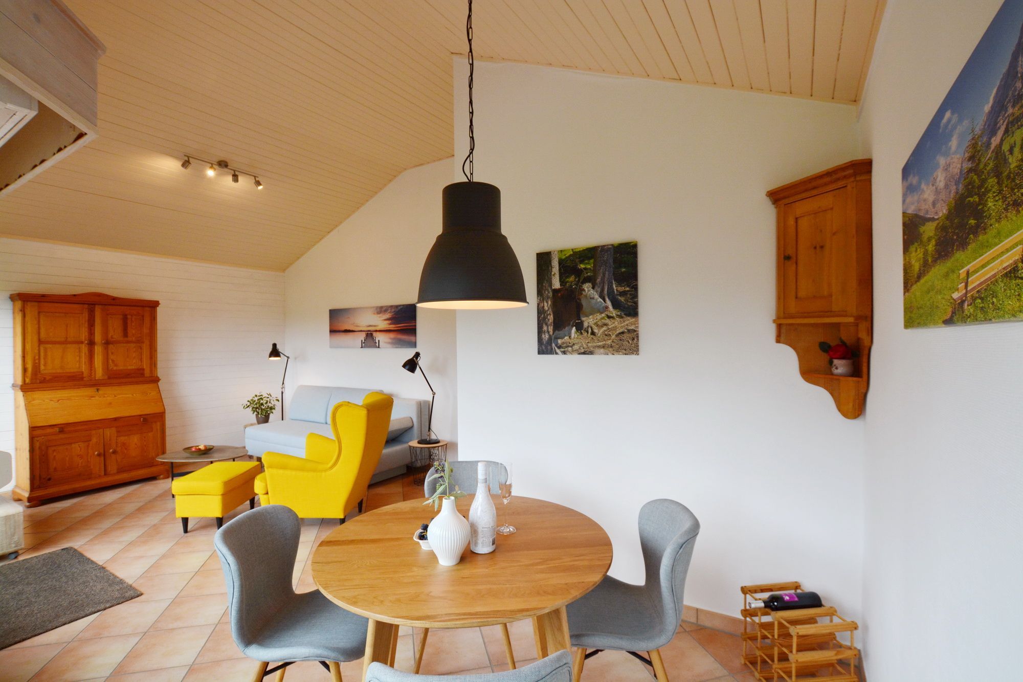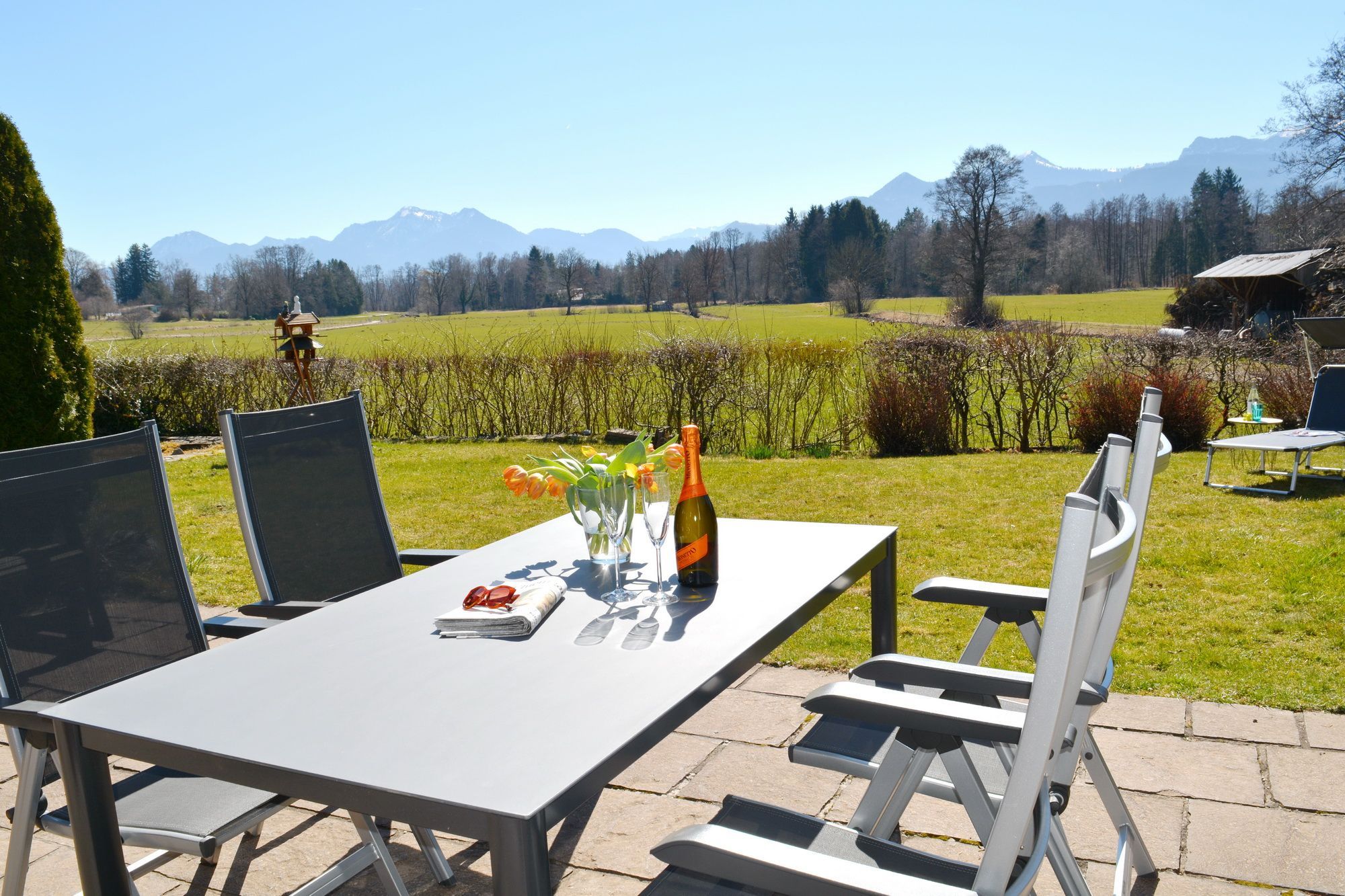 Auf der großzügigen Terrasse mit Garten und wunderschönem, unverbautem Blick auf die Berge werden Sie sicherlich viele Stunden verbringen. Die Terrasse ist über den Wohn- und Essbereich zu betreten. In der ansprechend eingerichteten Küche können Sie den Tag gemütlich mit einem Kaffee oder Tee an der Frühstücksbar starten. Der Wohnbereich sowie das angrenzende Badezimmer sind mit Fußbodenheizung ausgestattet. Ergänzt wird das Erdgeschoss durch das Schlafzimmer mit Doppelbett und das Badezimmer, welches mit einer Dusche versehen ist.