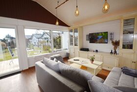 Wohlfühlen vom ersten Augenblick! Im Erdgeschoss des Reihenhauses befindet sich der offene und helle Wohnbereich mit Kamin (für Pellets), Essbereich und voll ausgestatteter, offener Küche. Lümmeln auf dem großen Sofa gehört sicherlich im Urlaub mit dazu. Über den Wohnbereich gelangen Sie auf die nach Süden ausgerichtete Terrasse, somit können Sie optimal die Sonne genießen. Gemütlichen Grillabenden steht ebenfalls nichts im Wege. Das kleine aber feine Ferienhaus bietet ein Schlafzimmer, welches mit einem Doppelbett ausgestattet ist. Ein Badezimmer mit Tageslicht ist mit Badewanne, Waschmaschine und WC versehen.