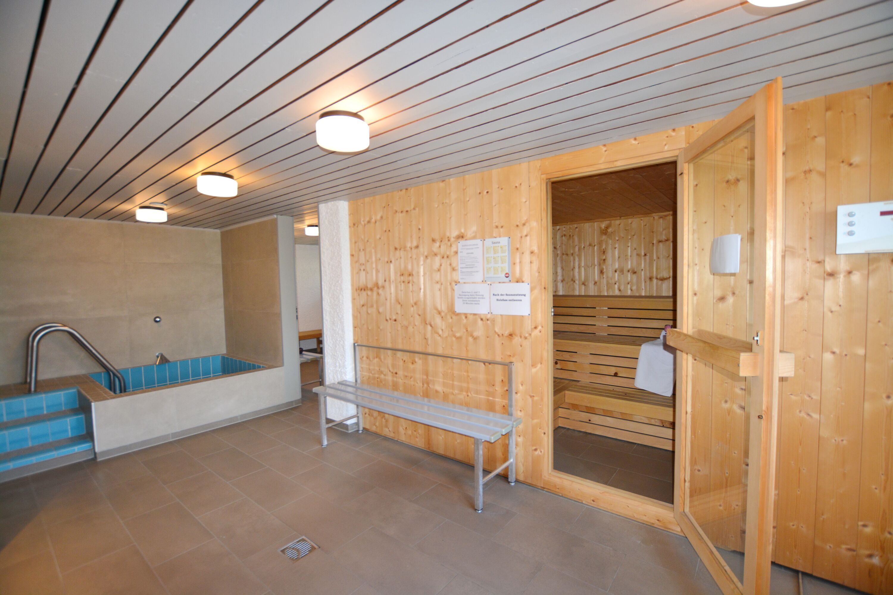 • Zugang zum großen Hallenbad und zur Sauna im Gemeinschaftsbereich der Anlage, Saunanutzung gegen Gebühr.