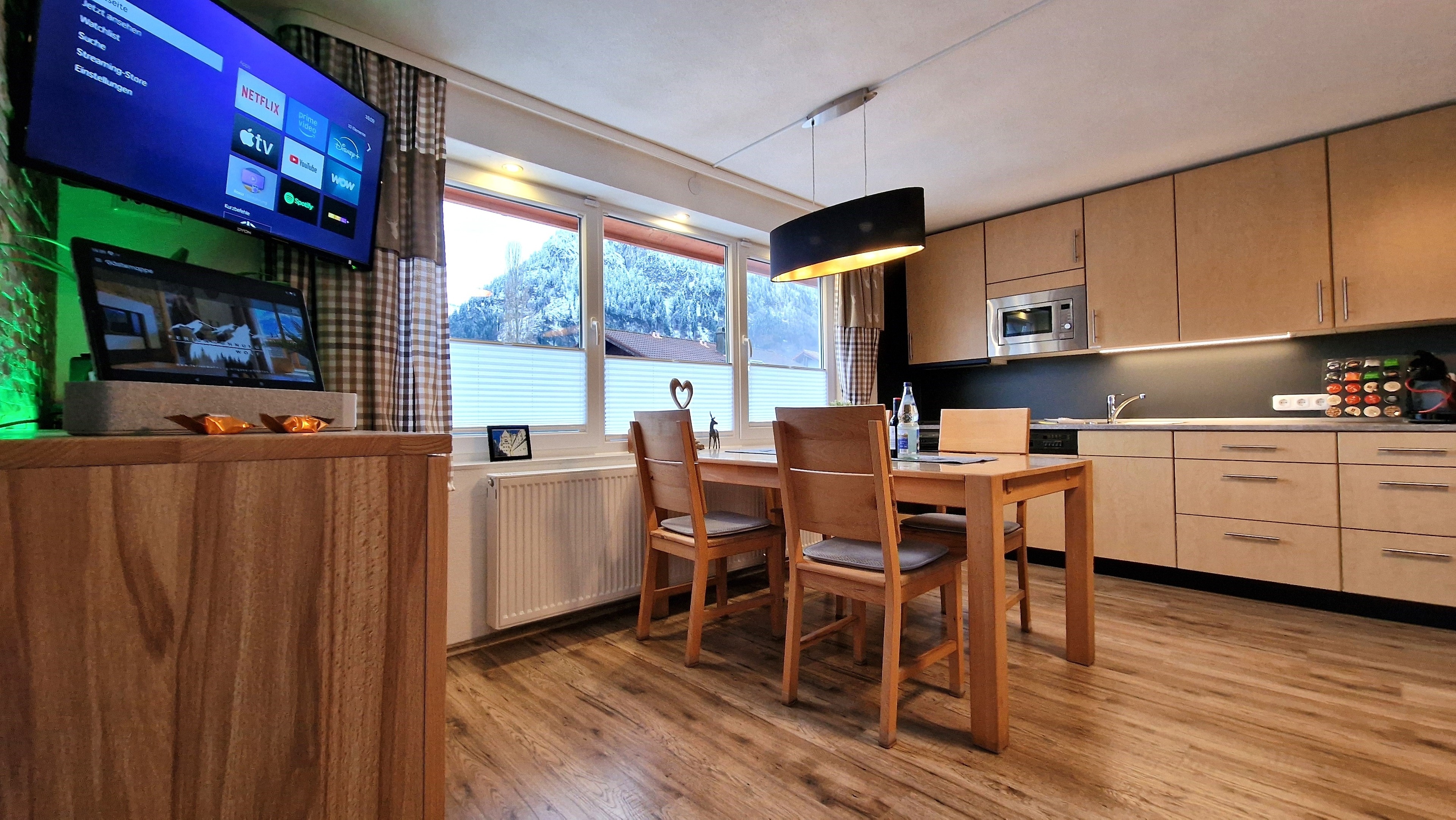 Zu der Wohnung gehören ein Schlafzimmer auf Wunsch mit einem Babybett, ein Wohnraum mit Küche, große Essbereich, Smart Flachbild-TV und Schlafsofa, ein kleines Bad, separates WC, große Ost-Balkon mit Bergblick und verfügt über kostenloses schnelles W-LAN, Ski- und Fahrradgarage. Vom Balkon können Sie den Blick auf die Pfrontener Berge genießen. Es erwartet Sie eine Moderne Wohnung, mit vielen Details aus dem schönen Allgäu.