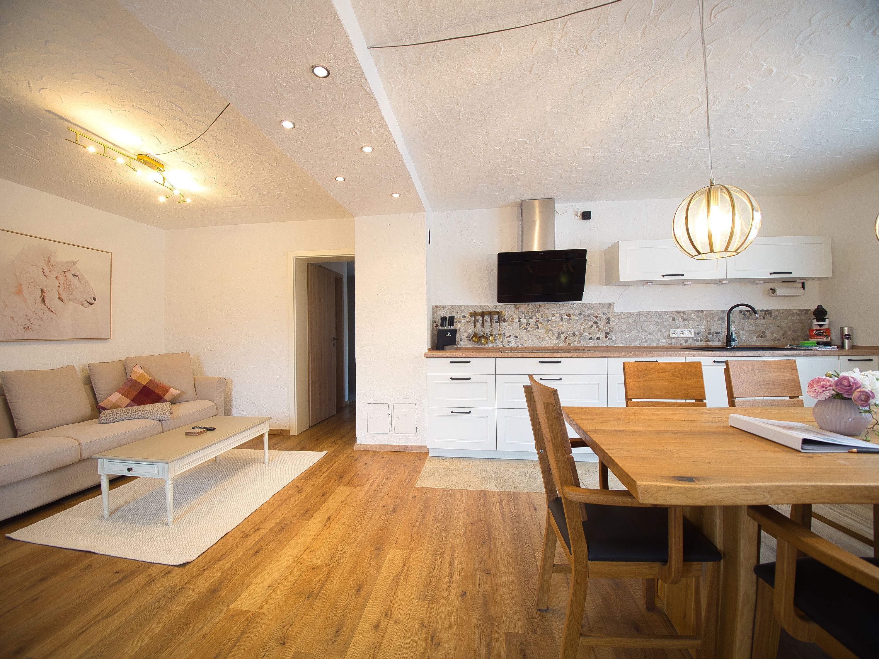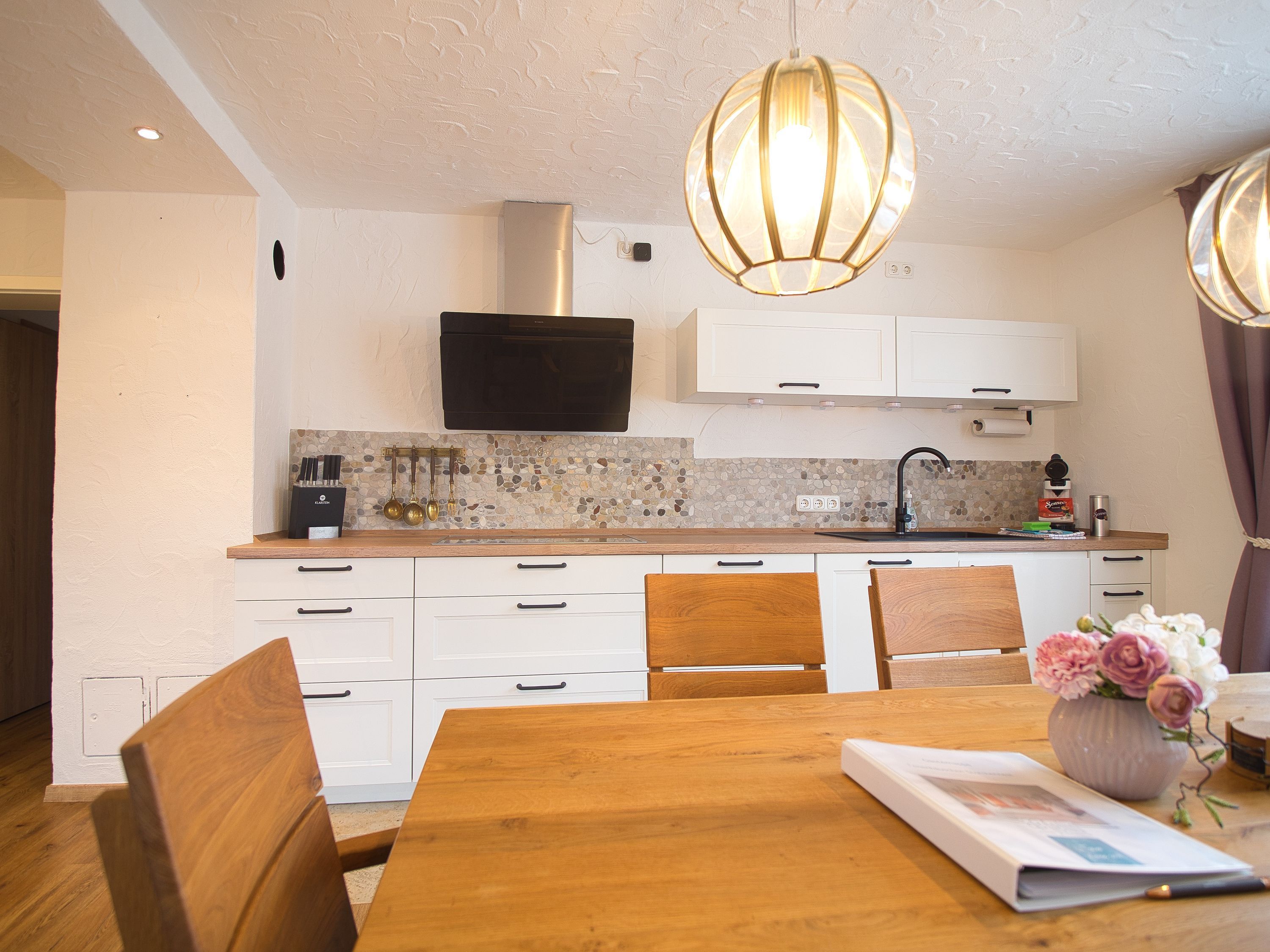 Das offen gestaltete Häuschen mit ca. 120 m2 auf zwei Etagen wurde mit viel Liebe zum Detail, stilvoll und gemütlich eingerichtet. Von beiden Ebenen genießen Sie einen herrlichen Blick auf die Berglandschaft.