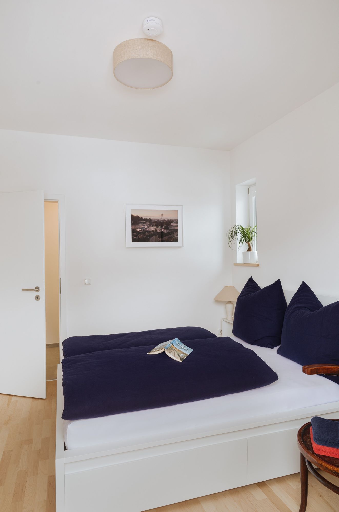 In den beiden Schlafzimmern erwarten Sie bequeme Betten (1,80 x 2,0 m und 1,40 x 2,0 m) mit Komfortmatratzen und hochwertigen Lattenrosten.