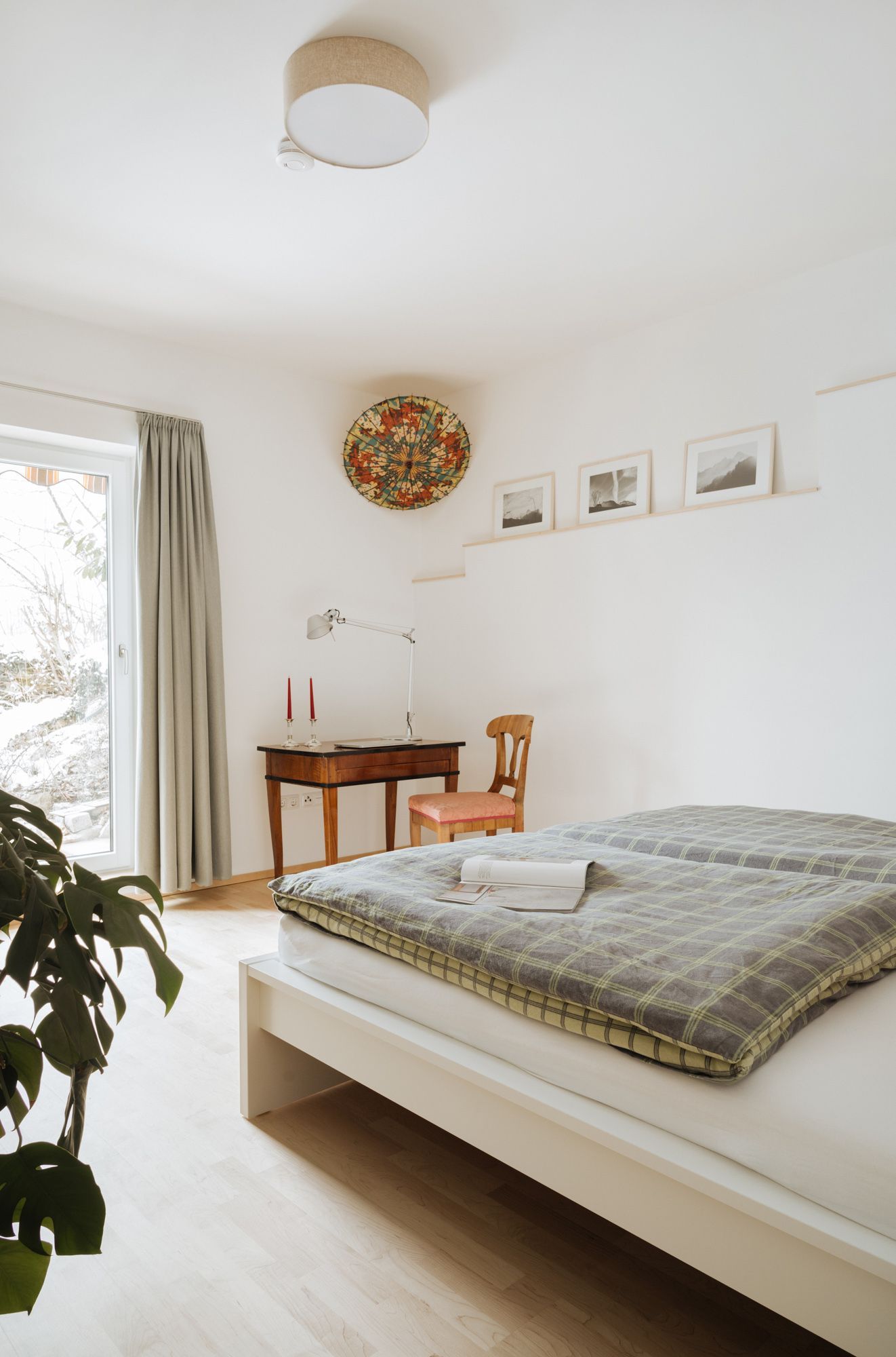 Das Wohnzimmer mit Erker verfügt über ein bequemes Sofa, einen großzügigen Esstisch und einen Relax Stuhl, welcher zum Füße hochlegen einlädt. Ebenfalls im Wohnzimmer sind ein Smart-TV mit SAT-Fernsehen und eine Stereoanlage. Im Untergeschoss gibt es eine Waschmaschine sowie die Möglichkeit Ihre Ski und Fahrräder einzustellen.
