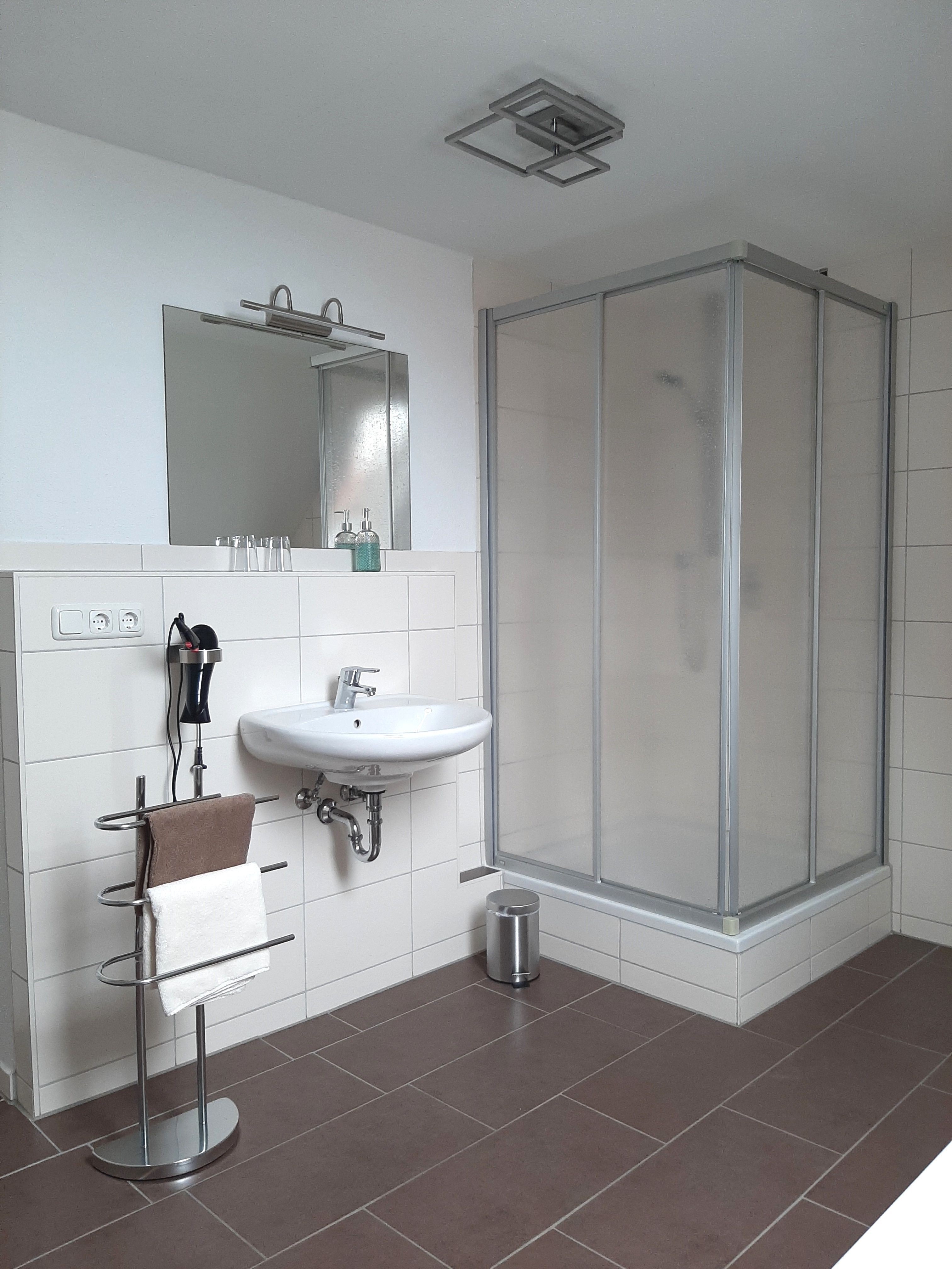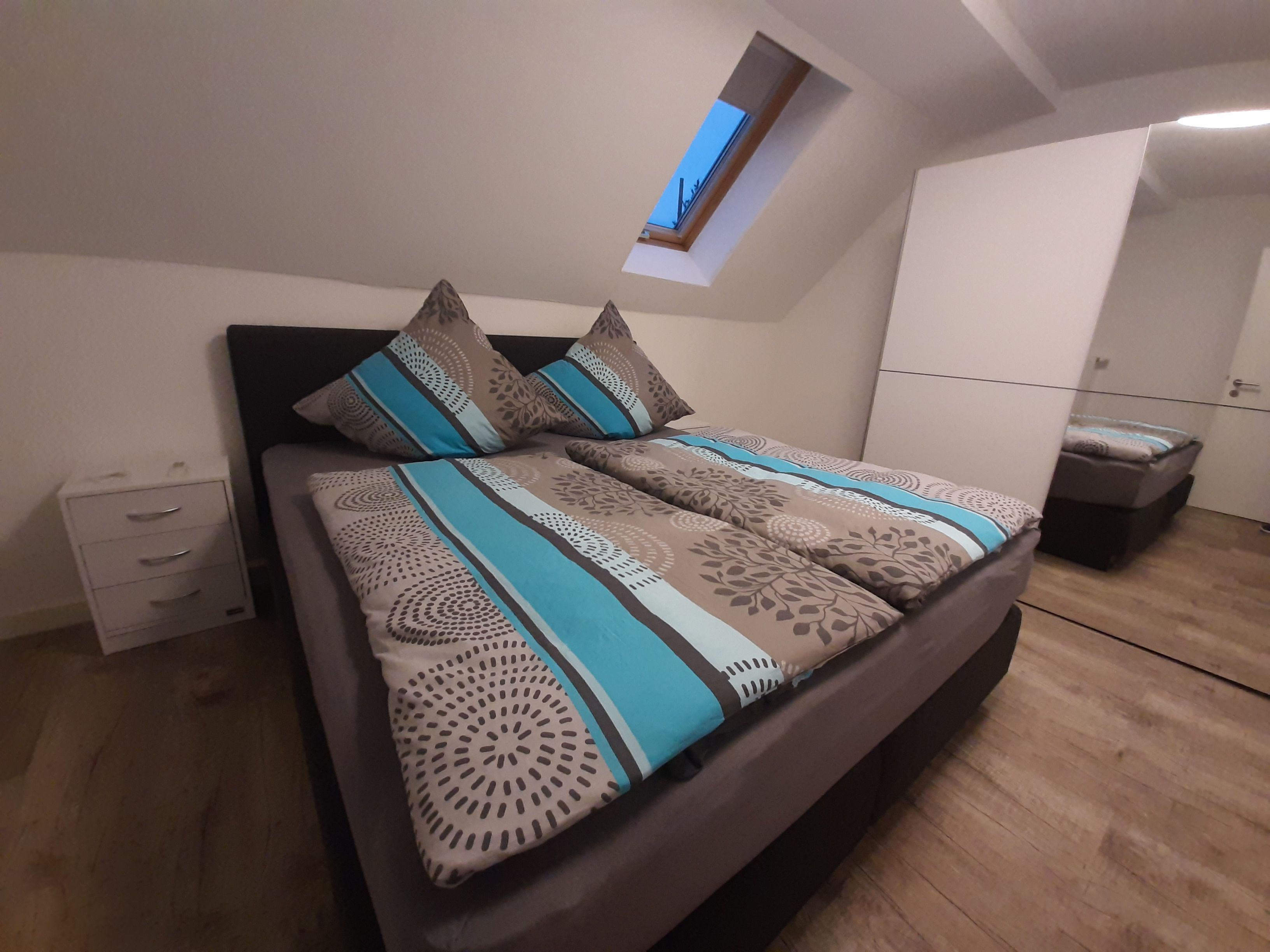 Unsere Ferienwohnung MERLIN ist ca. 64 qm groß und befindet sich im Dachgeschoss unseres Hauses. Sie besteht aus einer eingerichteten Küche mit Essbereich, einem Wohnzimmer, einem Schlafzimmer (Bettengröße: 180x200 cm) und einem sehr großen Badezimmer mit Badewanne und Dusche.