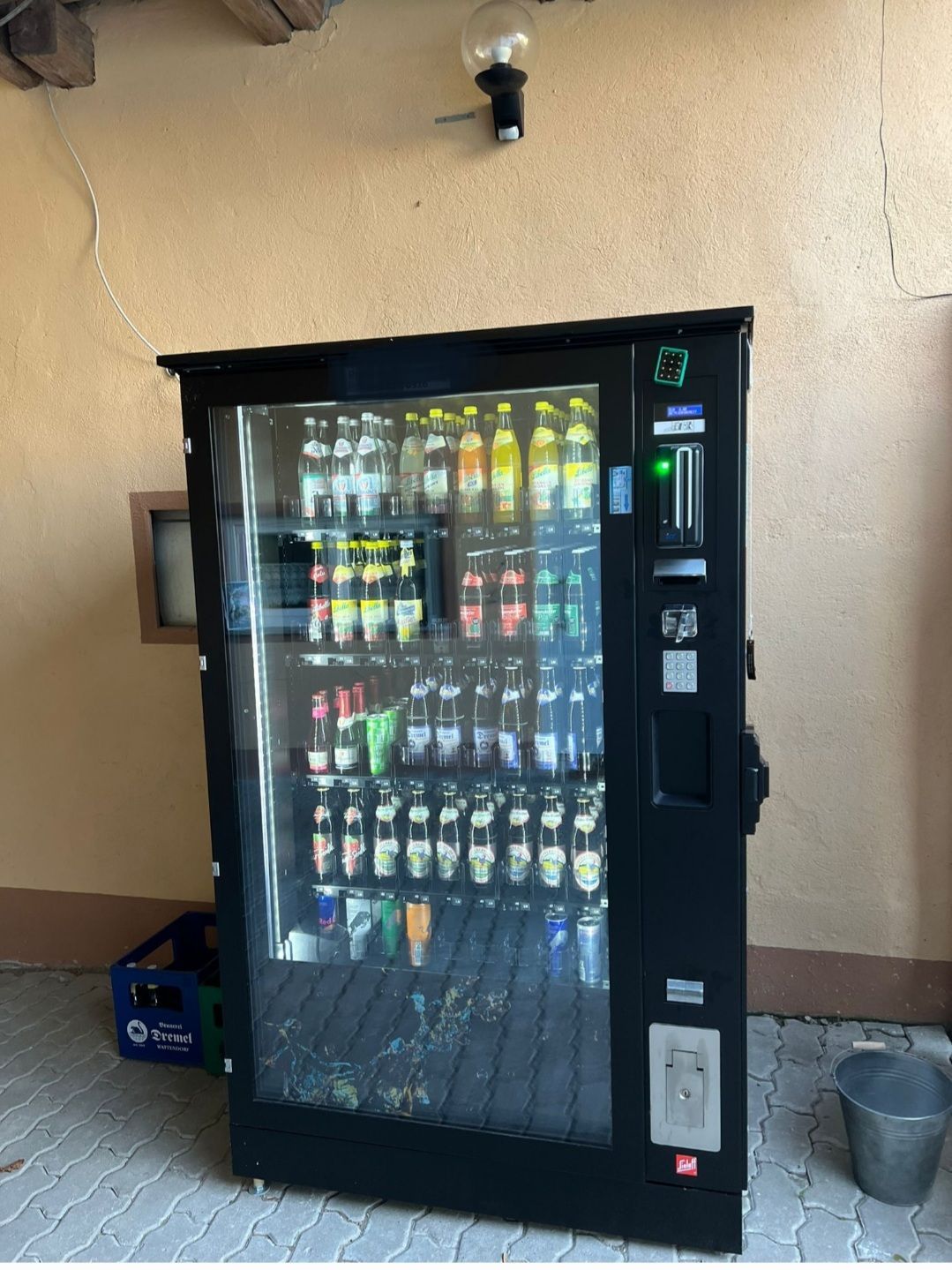 Im Hofbereich befindet sich ein Getränkeautomat mit einer reichhaltigen Auswahl an Getränken.