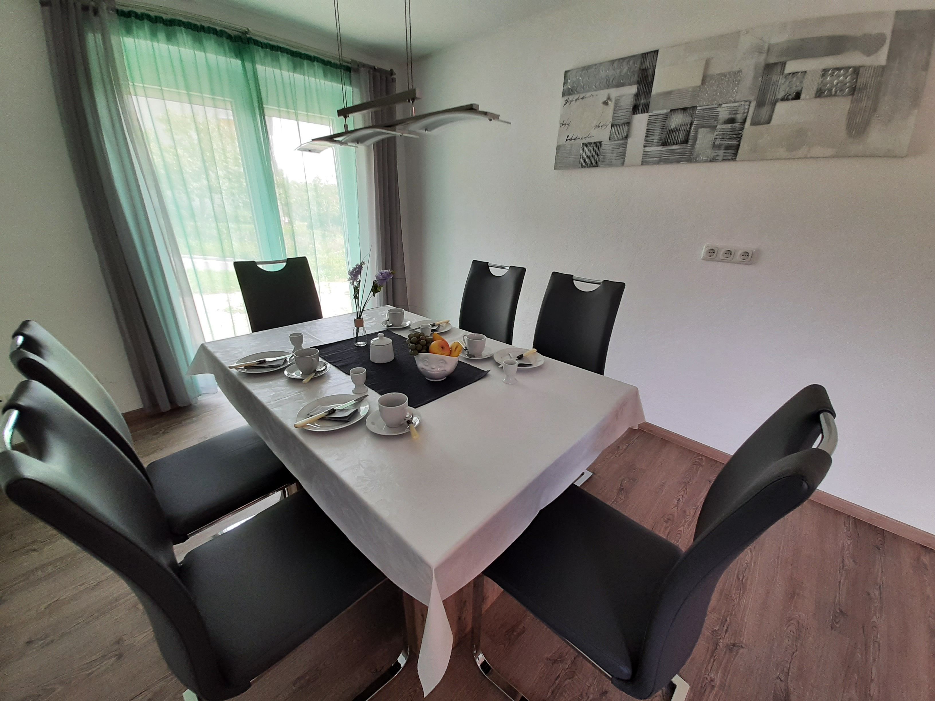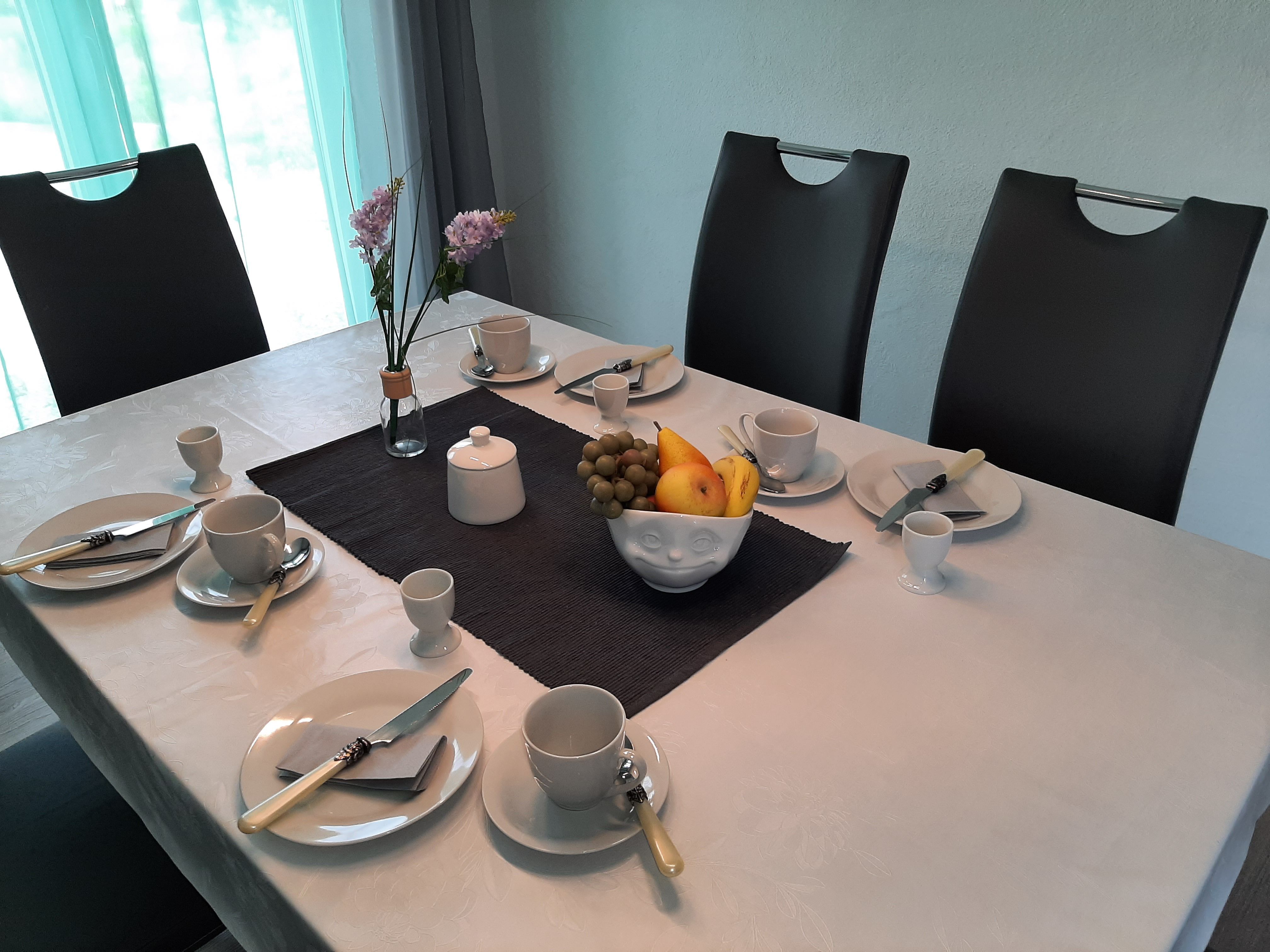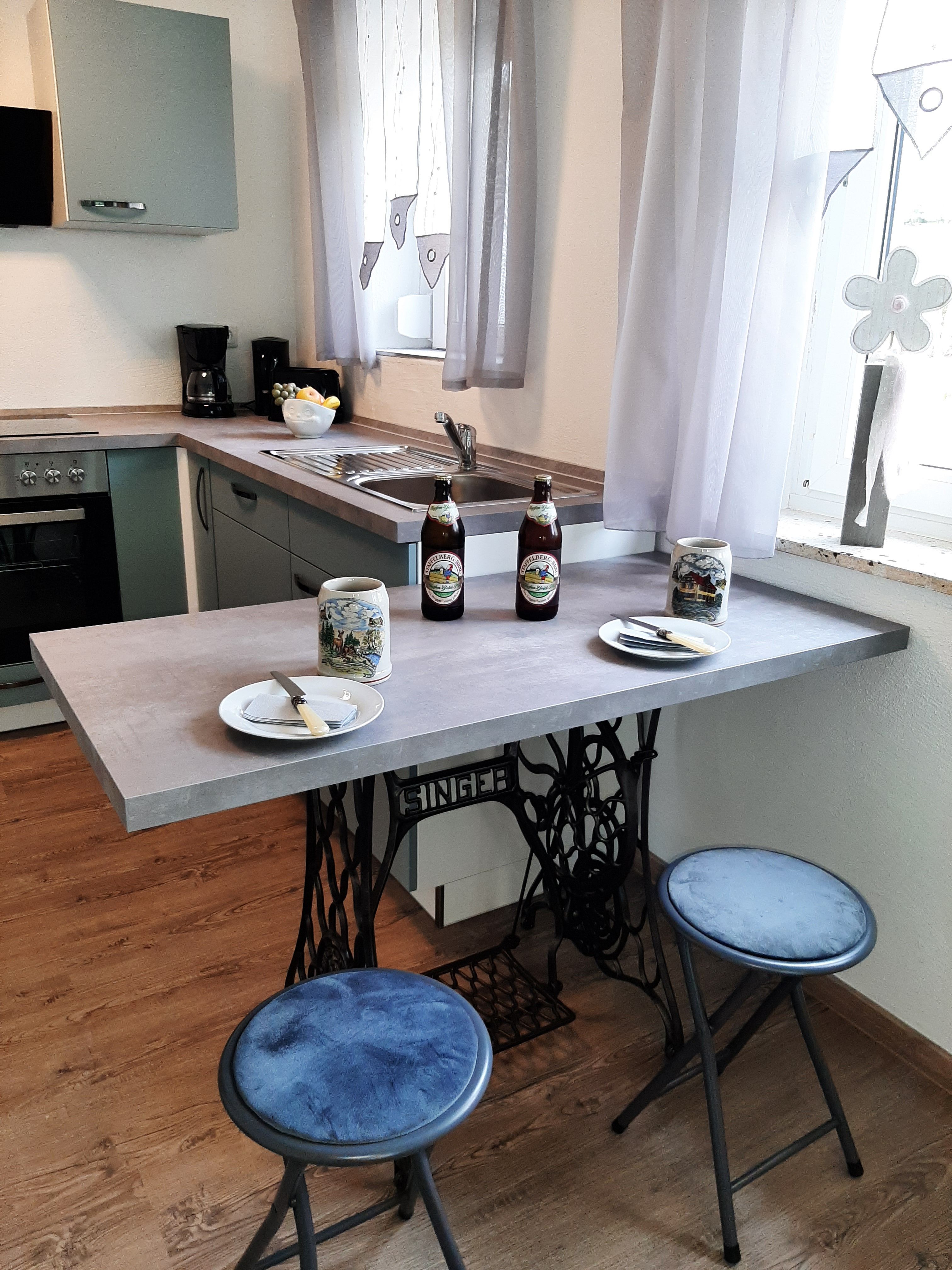 Unsere Ferienwohnung MORITZ ist ca. 65 qm groß und befindet sich im Erdgeschoss unseres Hauses. Sie wurde seniorengerecht gestaltet und besteht aus einer sehr gut ausgestatteten Küche mit Essbereich, einem Wohnzimmer, zwei Schlafzimmer (Bettengröße: 180x200 cm und 140x200 cm), einem Badezimmer mit ebenerdiger Dusche und einer möblierten Terrasse mit Blick auf die Giechburg.