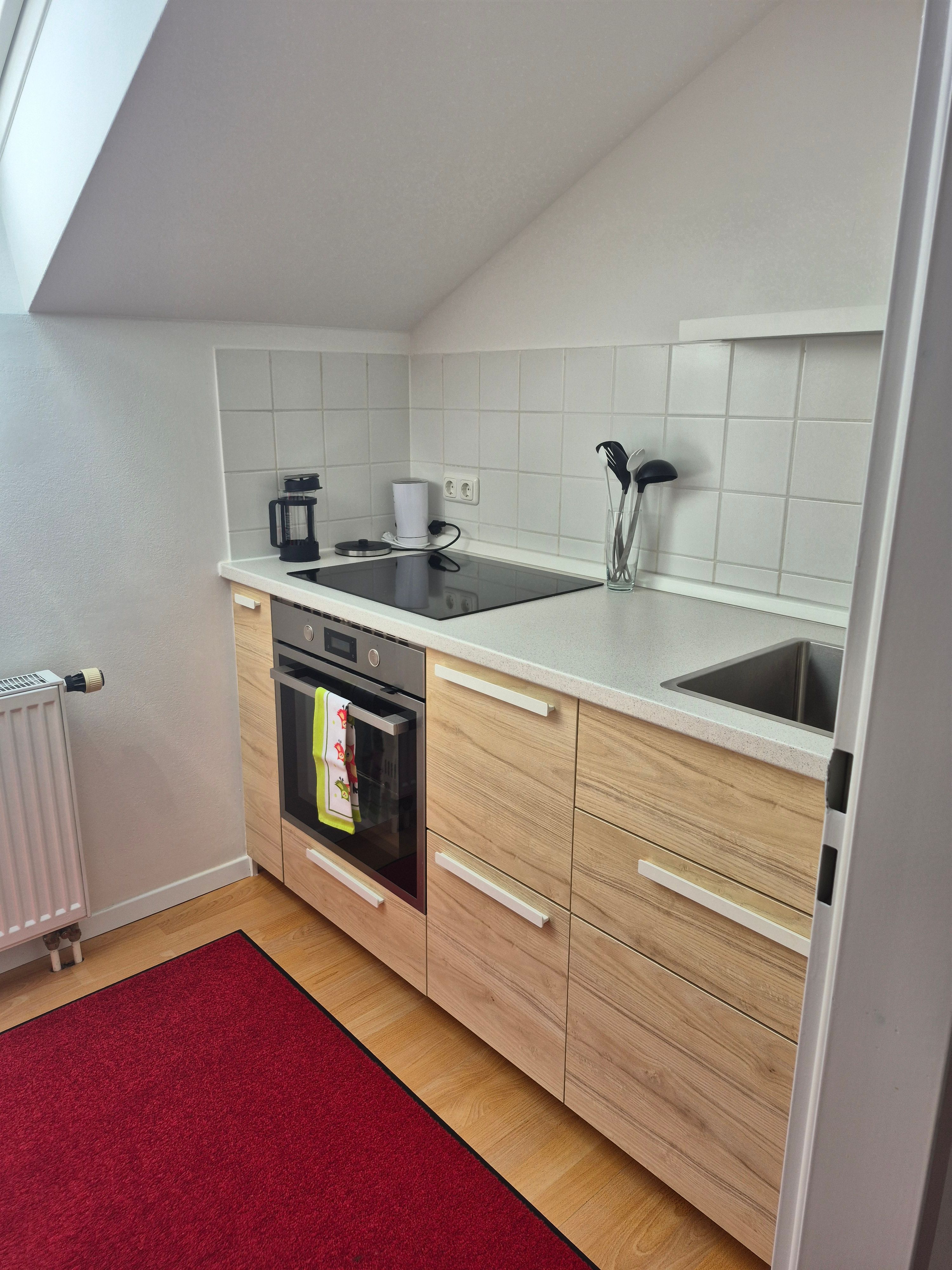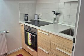 Die gemütliche Wohnung verfügt über einen Laminatboden und eine separate, kleine Küche.