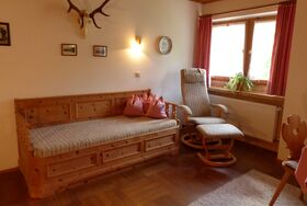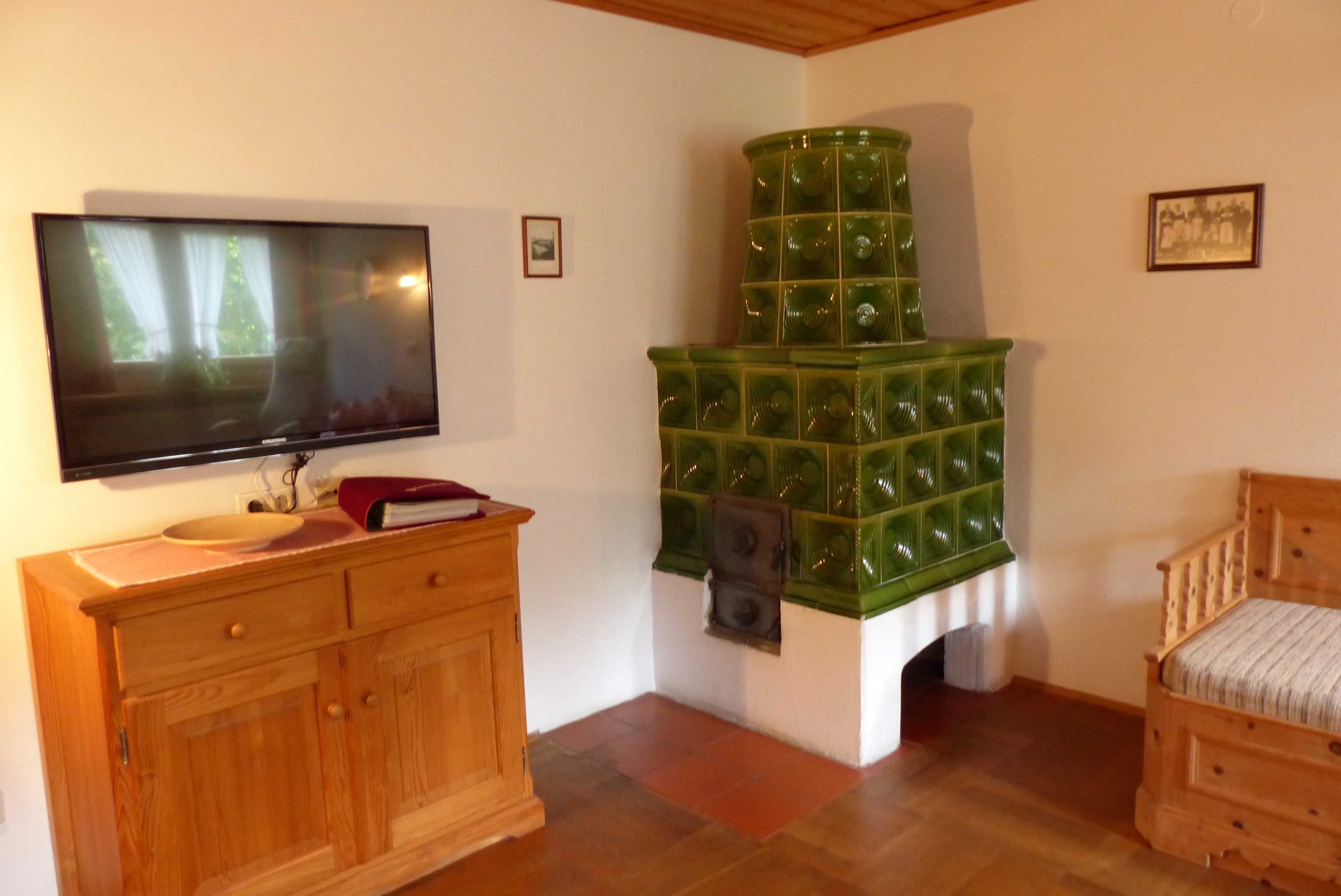 In dieser gemütlichen 70 m² Wohnung erwarten Sie, neben einer Bauernstube mit Kachelofen und Eckbank, zwei Schlafräume mit Radiowecker, davon eines mit Doppelbett. Ein Badezimmer mit Dusche und WC, handgemachter Naturseife sowie ein separates WC mit Waschgelegenheit.