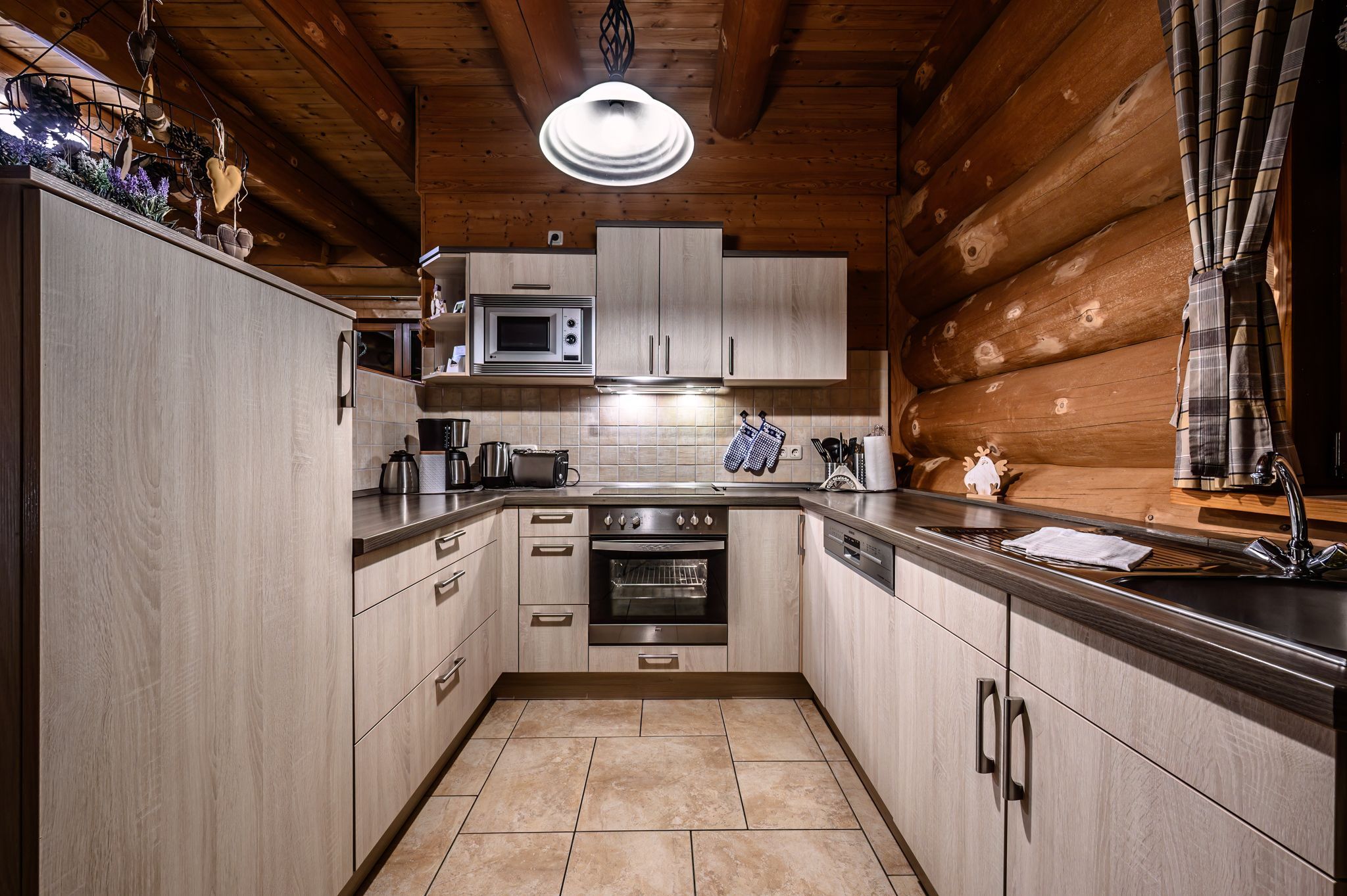 Die vollausgestattete Küche mit Spülmaschine, Backofen, Mikrowelle, Kühlschrank mit Gefrierfach, Kaffeemaschine, Toaster und Wasserkocher lässt es an nichts fehlen.