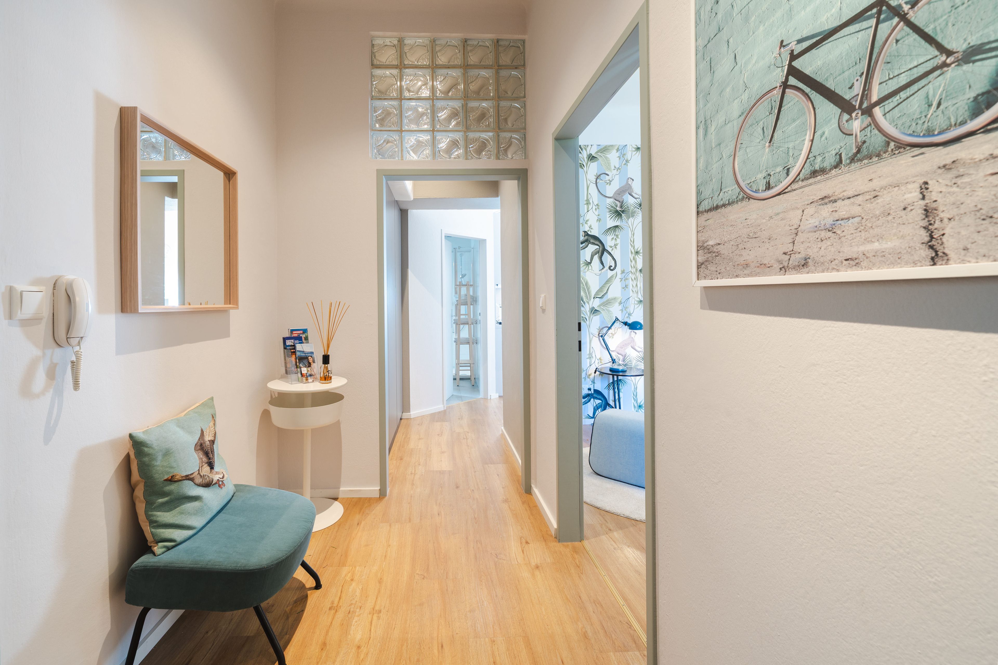 Die Wohnung ist mit viel Flair und Charme eingerichtet und bietet richtig viel Platz und Raum für bis zu 7 Personen. Ideal für Familien mit Kindern, zwei Pärchen, zwei Familien mit kleineren Kindern oder einer Gruppe von Freunden. In jedem der Schlafzimmer gibt es ein extrabequemes Doppelbett in Hotel Qualität (180x200 cm). Im blauen Schlafzimmer findet sich zusätzlich ein ausziehbares 180x200 cm großes Schlafsofa. Das grüne Schlafzimmer ist mit einem 140x200cm Schlafsofa versehen. Gerne können auch ein Gitterbett für Kleinkinder und Hochstuhl auf Wunsch bereitgestellt werden außerdem ist ein sicherer Parkplatz bei bei Wohnung inkludiert..