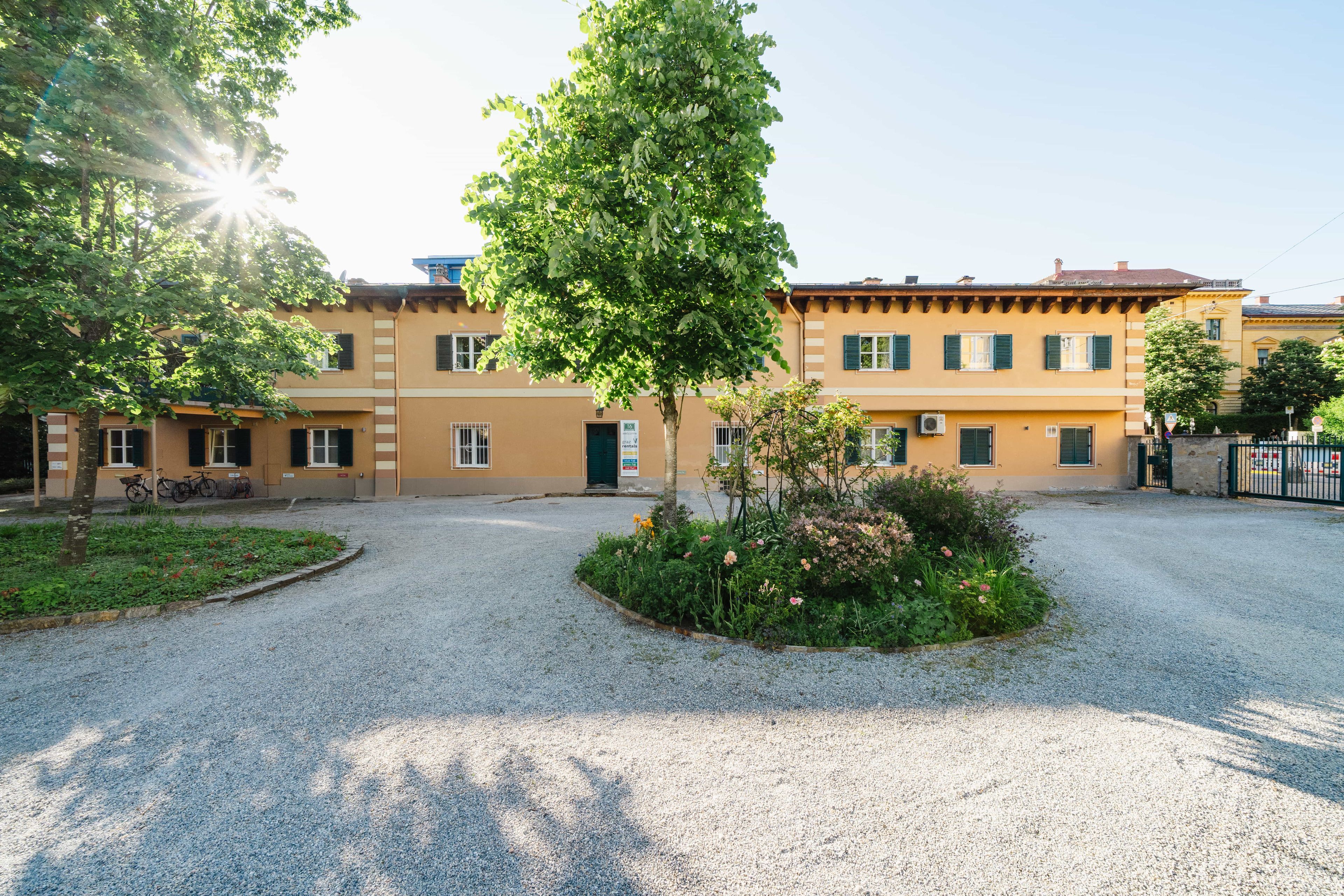 Das blaue Schlafzimmer schaut in Richtung Garten der Villa, von der Wohnküche und dem grünen Schlafzimmer sieht man zum Eingang der ReSoWi (Rechts-Sozial- Wirtschaftswissenschaften) der Universität Graz.