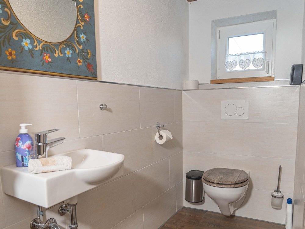 Spielplatz, Schwimmteich und Gartenhäuschen mit Grill und Liegestühlen laden zum Verweilen ein. Beim Teich steht eine rustikale Faßsauna für unsere Gäste, mit Holzofen.