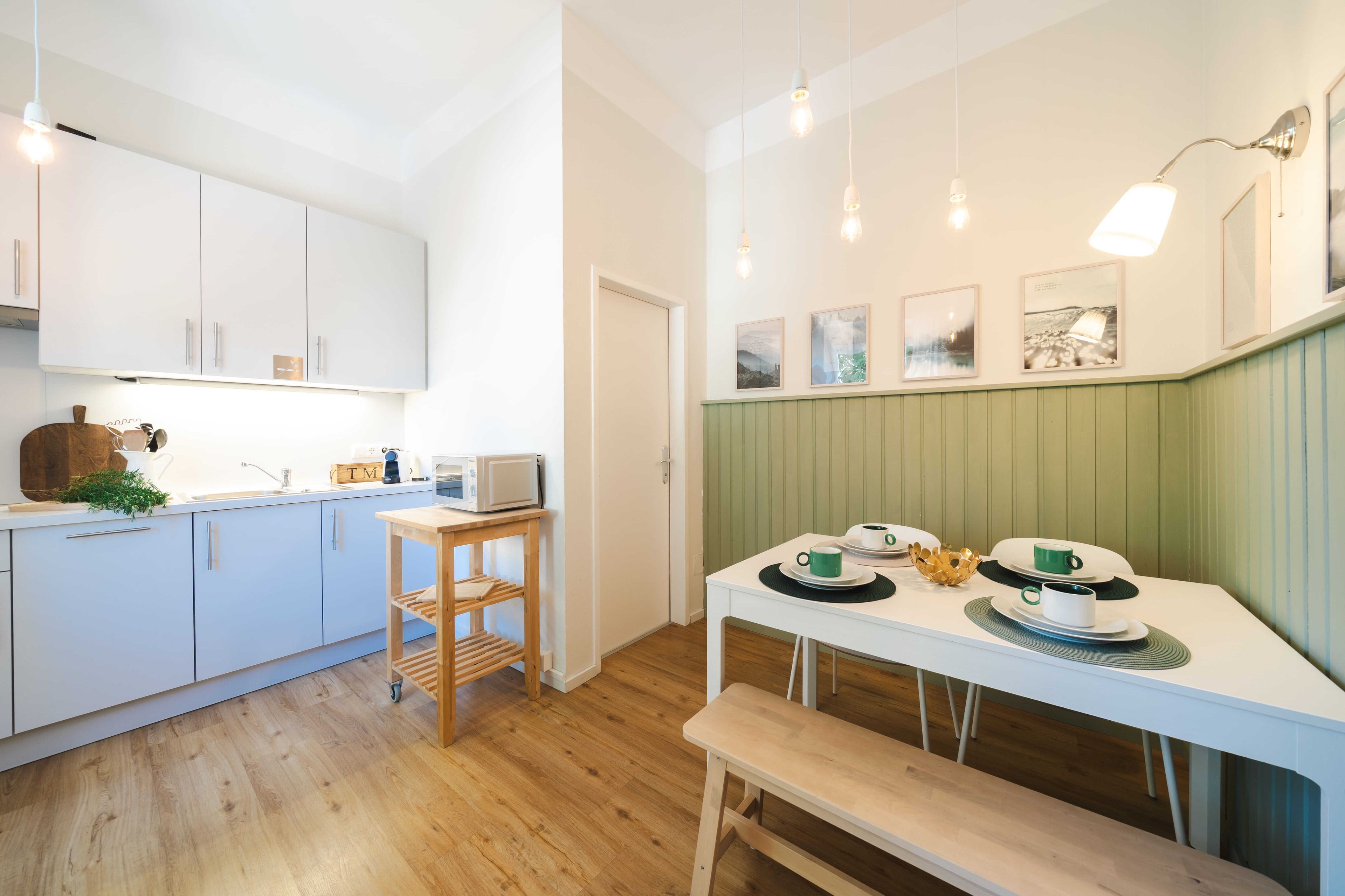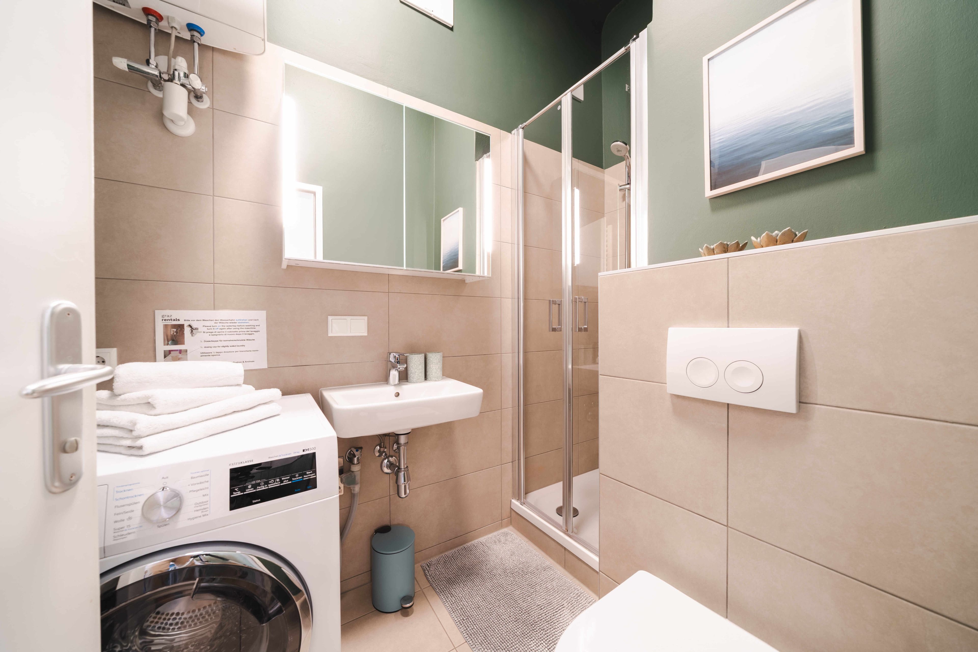 Das Appartement verfügt über eine voll eingerichtete Küche, ein Badezimmer mit Dusche und Waschmaschine, inklusive Trocknerfunktion. Unser grünes Wohlfühl-Apartment lädt zum Verweilen ein und zwar auch gerne für längere Zeit.
