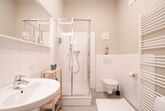 Unsere weiße Wohnung besticht durch einen großzügigen Vorraum, von dem man direkt ins Bad gelangt. Das Schlafzimmer bietet absoluten Komfort fast schon wie im Luxushotel. Die ruhige Lage Richtung Innenhof verspricht somit einen erhol- und geruhsamen Schlaf. Die im Erdgeschoss unseres Apartmenthauses gelegene Ferienwohnung ist vergittert und garantiert somit Sicherheit rund um die Uhr. Im Schlafzimmer findet man, neben dem luxuriösen und gemütlichen Doppelbett (180 x 200 cm), zusätzlich noch ein bequemes, ausziehbares Schlafsofa (160 x 200 cm). Ideal für den Aufenthalt mit Familie und Kindern.
