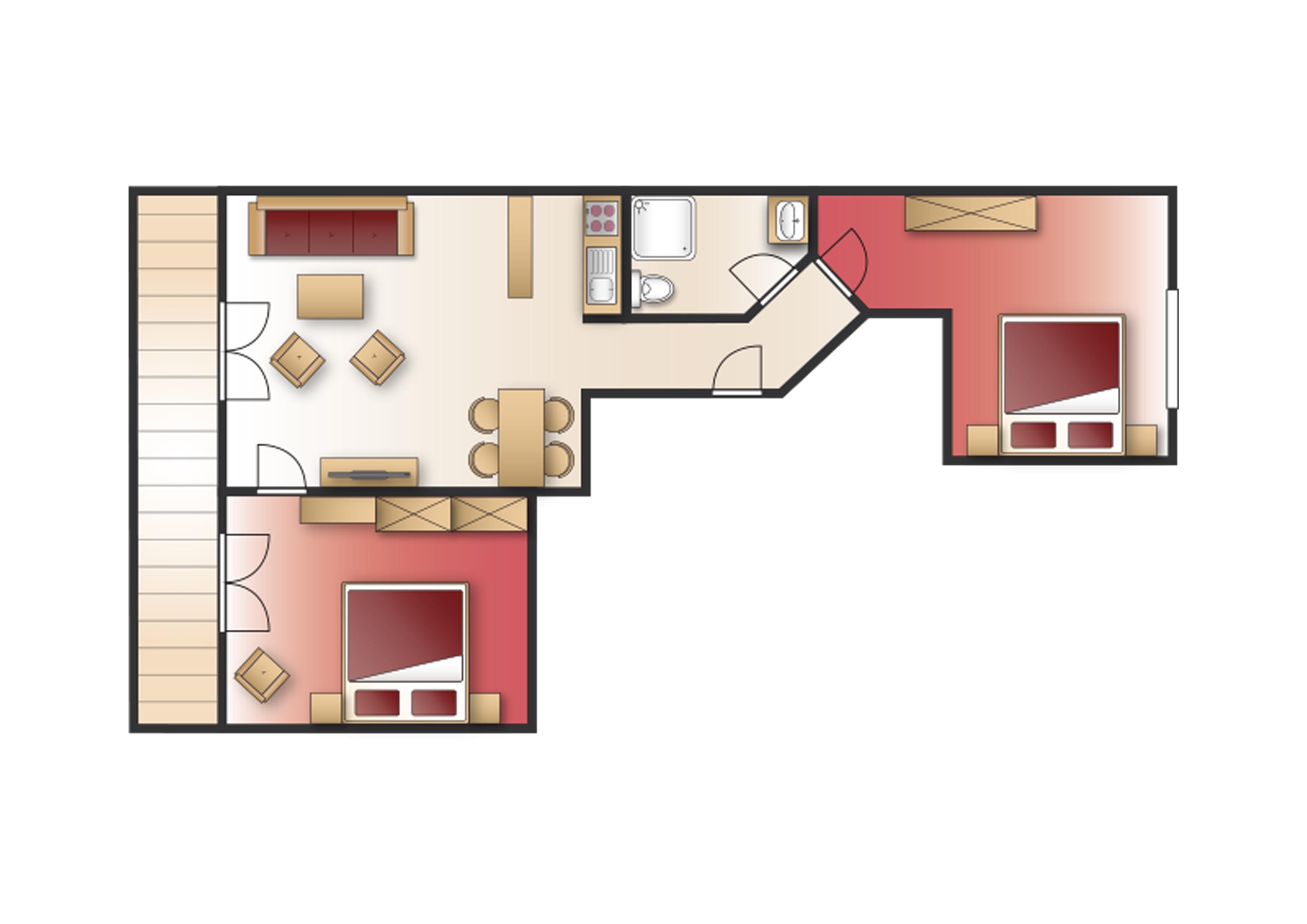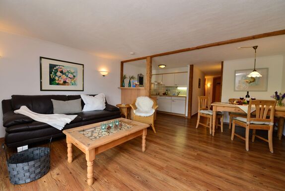 Geräumige Ferienwohnung für 2-4 Personen im 1.Stock mit Südbalkon. Die Wohnung hat zwei separate Schlafzimmer jeweils mit Doppelbett. NEU: Ab jetzt mit Flachbildschirmfernseher.