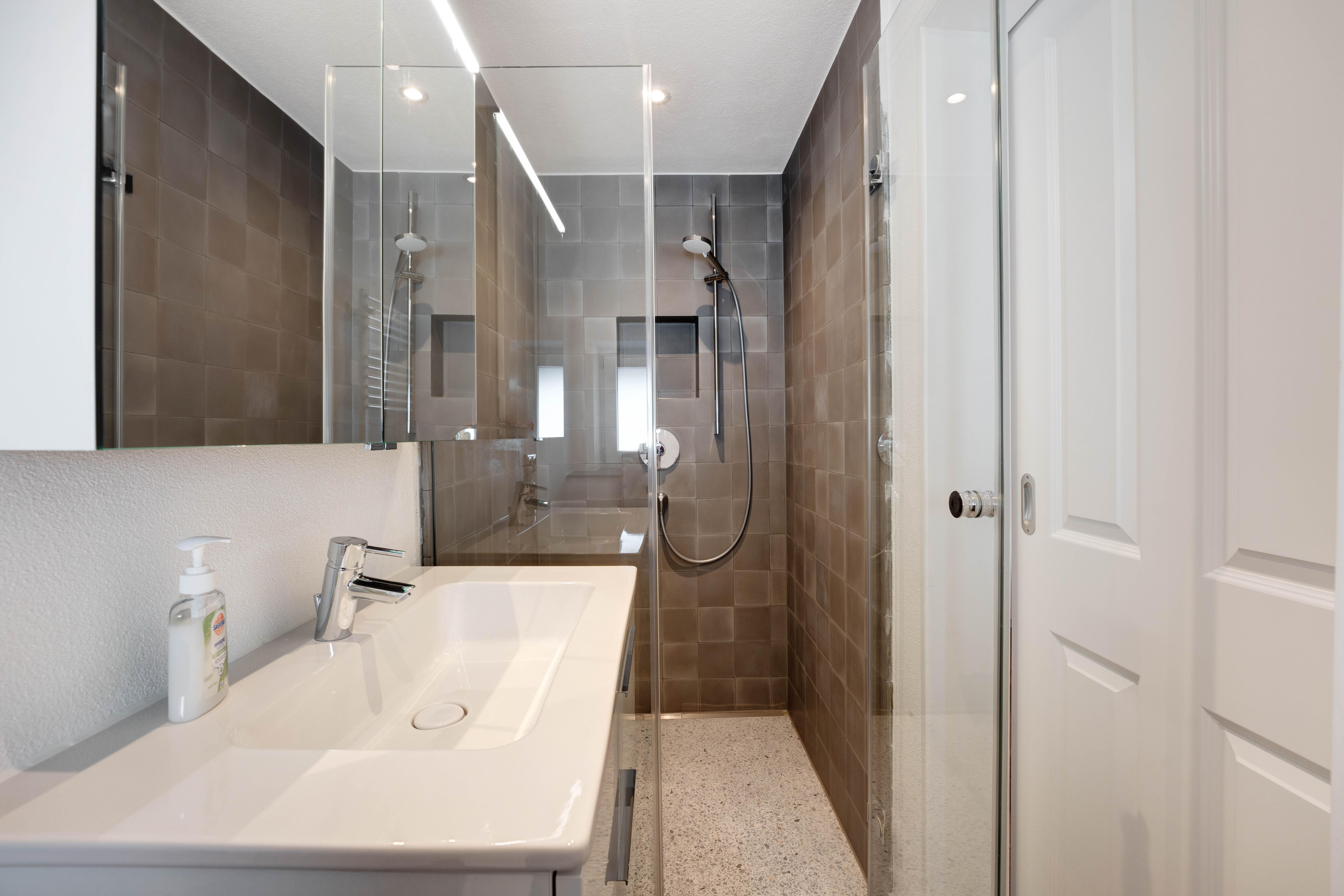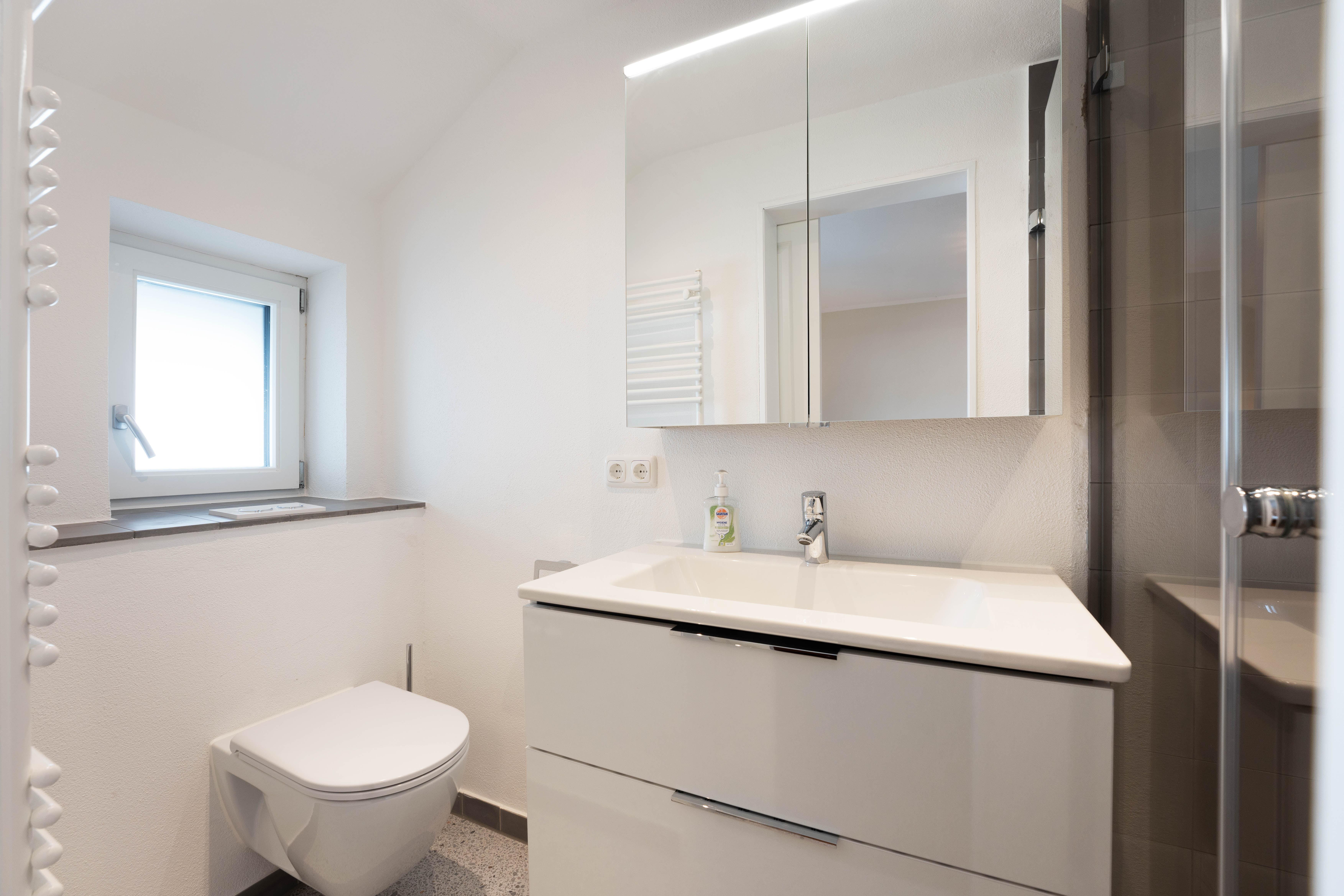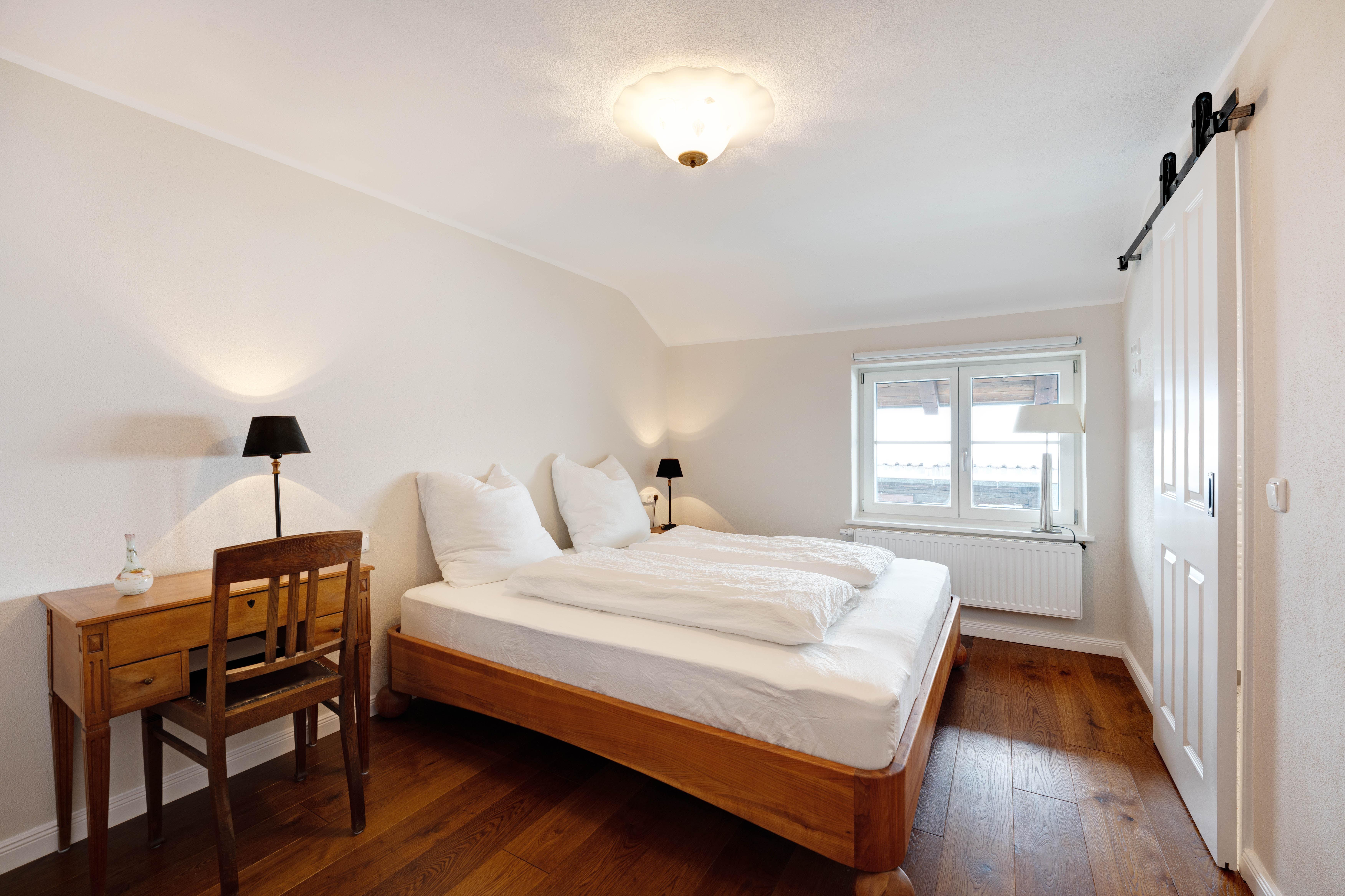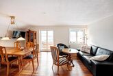 Sowohl der Wohnbereich als auch das Schlafzimmer mit Doppelbett (1,80 x 2,00 m) sind auf den sonnigen Südbalkon ausgerichtet. Von dort haben Sie das Geschehen in der Ortsmitte mit Rathaus, Haus des Gastes und Kirche im Blick.