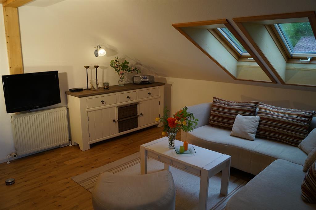 Die gemütlich eingerichtete Ferienwohnung (ca. 60qm) befindet sich im Dachgeschoß.