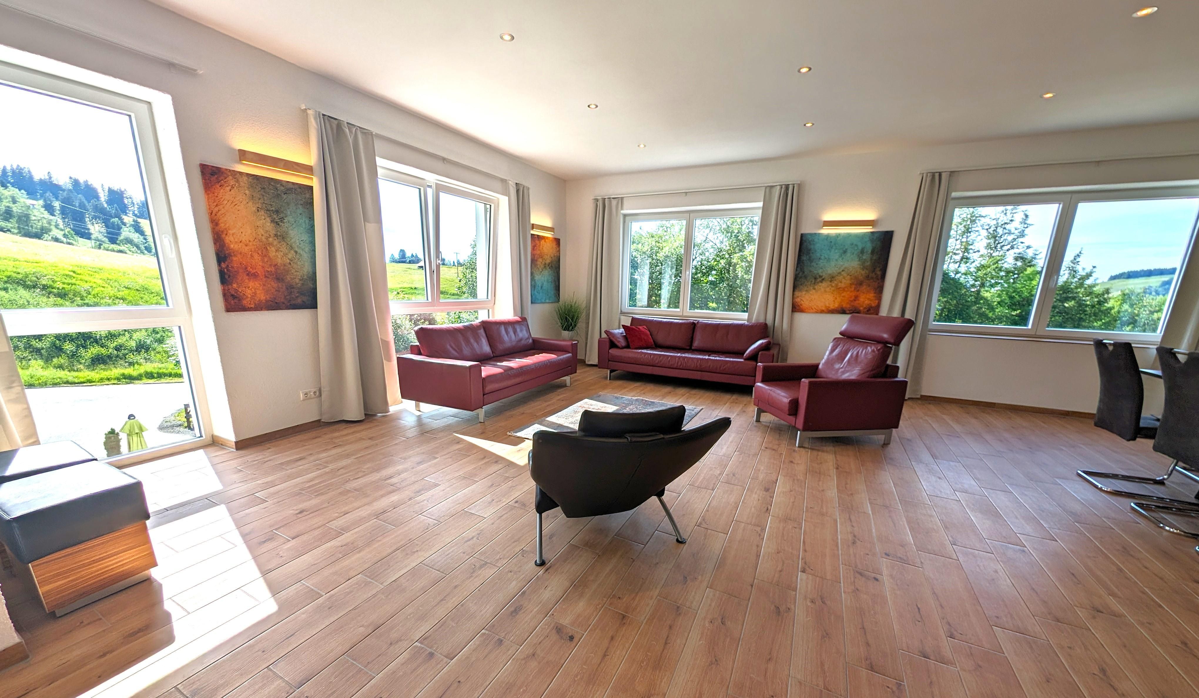 Unser Landhaus am Schindelberglift befindet sich naturnah und doch zentral (Steibis 2km, Oberstaufen 7km) auf 900 m Höhe in einer der schönsten Ferienregionen Bayerns. Für unsere Gäste ist die OberstaufenPlusCard inklusive und wird Ihnen bei Ihrer Anreise ausgehändigt. Diese bietet Ihnen zahlreiche Vorteile u.a. Bergbahnen frei (im Winter Skipass für die Region frei), EBike kostenlos, Aquaria Oberstfauen frei, Kletterpark frei, Sommerrodeln frei, Minigolfen frei, Eintritt Therme in Oberstaufen - Regeln für die OberstaufenPlusCard Nutzung unter Oberstaufen.de. Mehrere Wanderwege starten direkt am Haus. Die modernen großzügigen Wohnungen (60qm bis 170qm) mit Terrasse oder Balkon bieten höchsten Komfort gepaart mit einem herrlichen Panoramablick auf Oberstaufen und die Nagelfluhkette. Unser Haus ist für alle Naturliebhaber der ideale Ort um einen tollen Urlaub in herrlicher Natur zu verbringen - Sommer wie Winter.