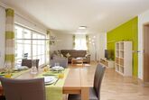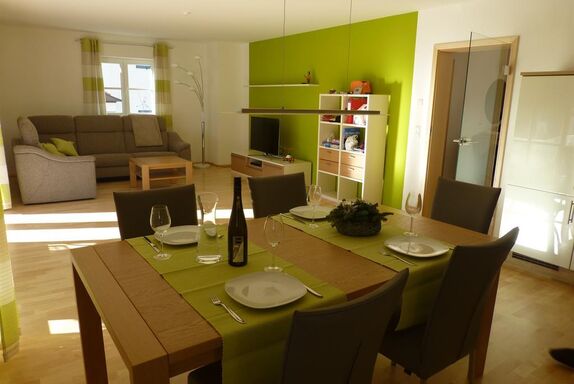 Ihre Wohnung wurde 2013 neu errichtet und 2023 renoviert; ist geräumig sowie komfortabel eingerichtet. Sie ist vom dazugehörigen Tiefgaragenstellplatz Nr. 28 bequem per Aufzug zu erreichen. Im Wohnzimmer ist ausgestattet mit Coach und Sesseln sowie einem internetfähigen TV. Die angrenzende Küche ist sowohl geräte- als auch geschirrseitg gut ausgestattet. Ein Esstisch mit Sitzgelegenheiten für 6 Personen ergänzen den Wohn-/Essbereich. Die Wohnung bietet Doppelbettzimmer (mit zusätzlichem Fernsehr), ein Dreibettzimmer (mit Schreibtisch und Kindersitzgruppe), ein Bad mit Dusche, Wanne und WC, ein separates WC, eine Terrasse sowie leistungsfähigem Internet.