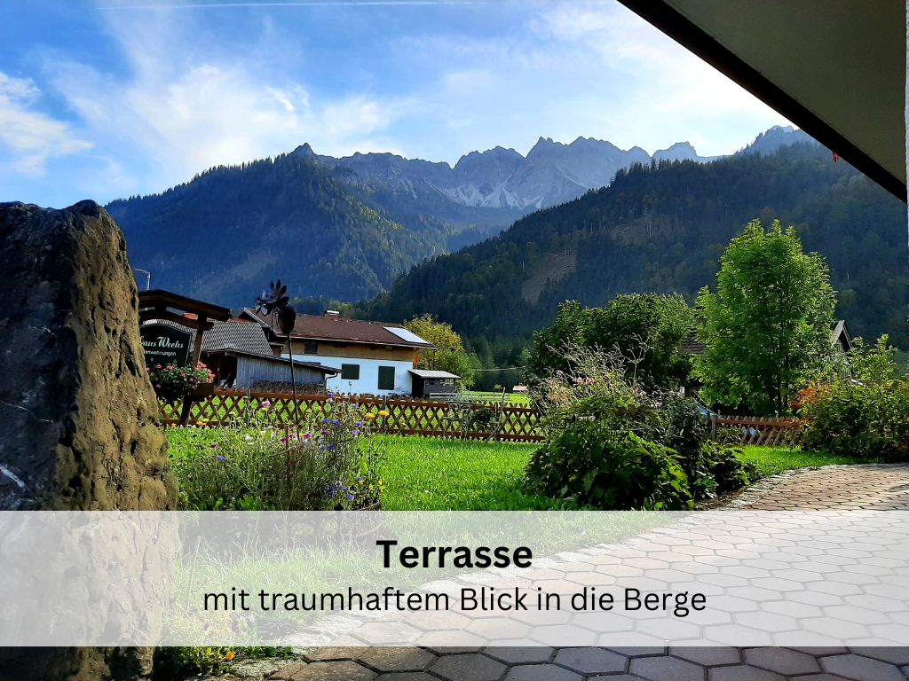 Von der großen Terasse haben Sie einen wunderbaren Blick in das Bergpanorama des Hintersteiner Tals.