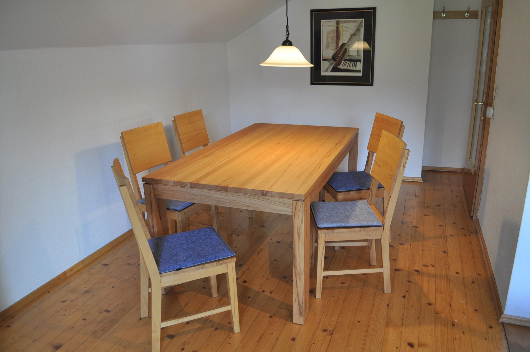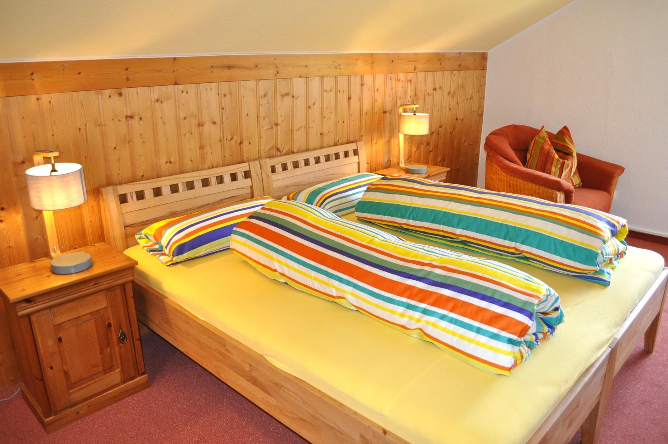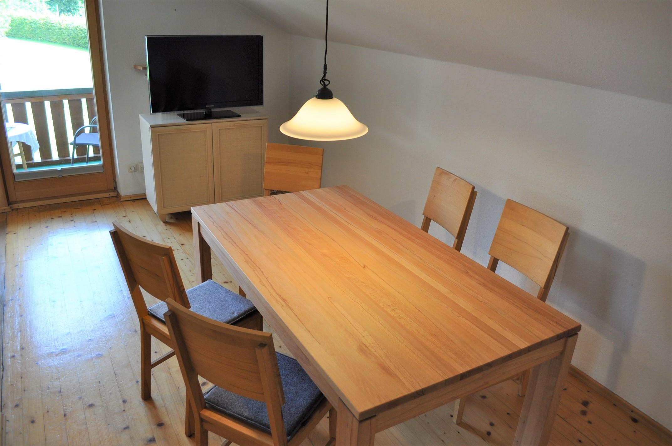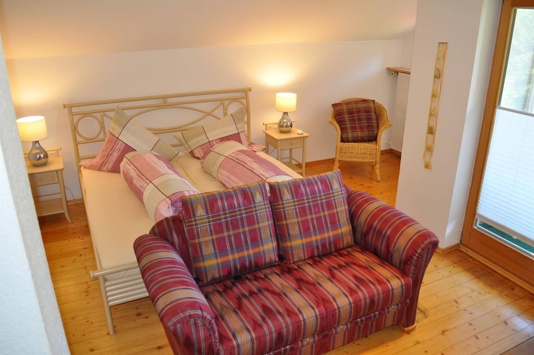 Charmante FeWo für unbeschwerte Urlaubstage: 3-Sterne Economy (80qm) im zweiten Stock: großzügig kombiniert: Doppelbett und Wohnzimmer mit Ostbalkon (freier Bergblick zum Iseler), großer Holztisch mit fünf passenden Stühlen, Couch, Sessel und Flachbild-TV, separate Ankleide mit Dachfenster, separate Küche mit Blick zum Hirschberg (Spülmaschine, Ceranfeld, Backofen), zwei weitere separate Schlafzimmer (1 x Einzel, 1 x Doppelbett) sowie neues Bad mit Dusche/WC sowie Badewanne und separates WC.