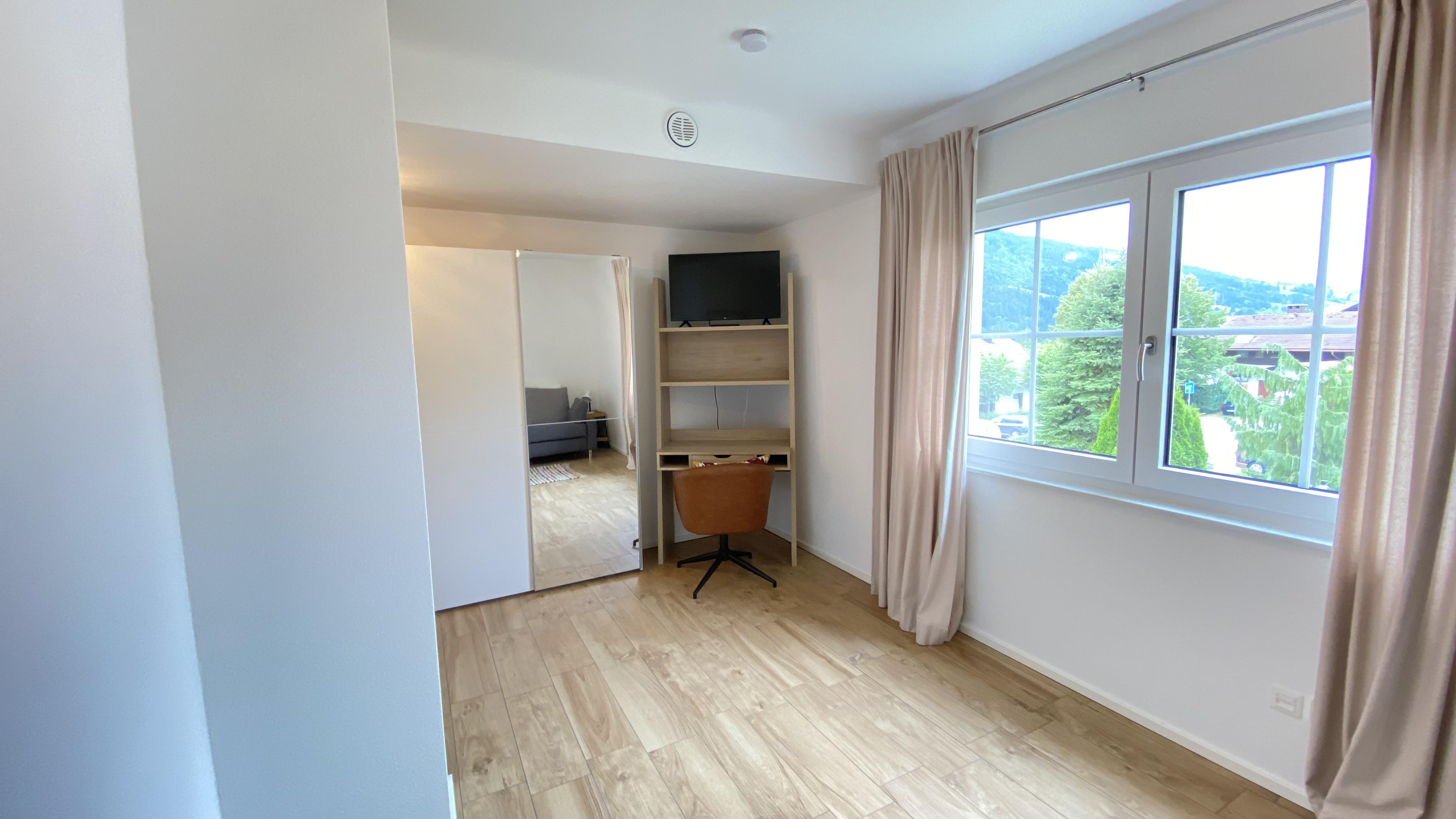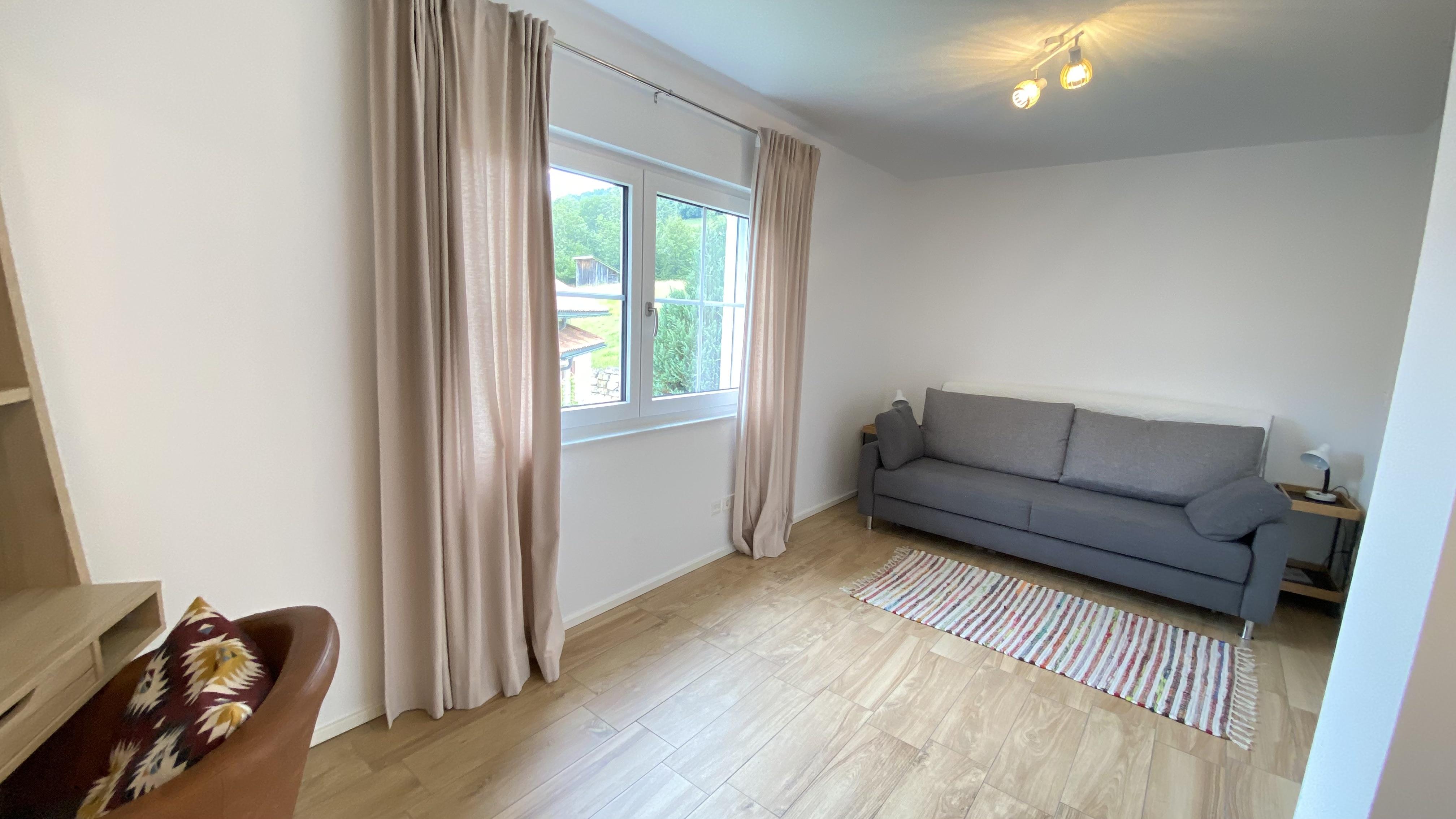 Ferienwohnung im 1. Stock mit großem Südbalkon, 2 sep. Schlafzimmer, wobei eines auch als Lesezimmer oder Büro genutzt werden kann. Komplett ausgestattete Küche mit Essplatz, Wohnzimmer mit gemütlicher Couchgarnitur. Badezimmer mit Dusche/Badewanne/WC, zweites sep. WC. Keine Haustiere erlaubt.