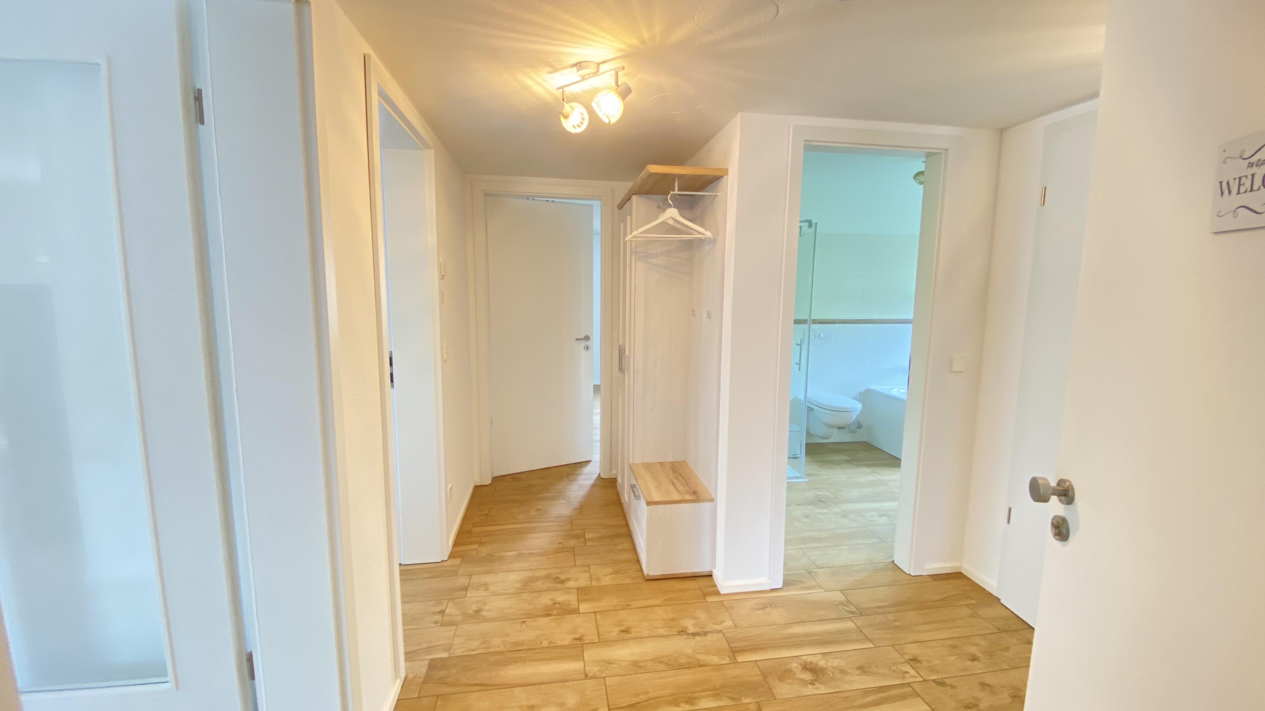 Alle drei Wohnungen haben zwei sep. Schlafräume, eine sep. Küche komplett ausgestattet auch mit Spülmaschine, ein gemütliches Wohnzimmer mit großer Couchgarnitur, Tageslicht-Badezimmer und ein zweites sep. WC.