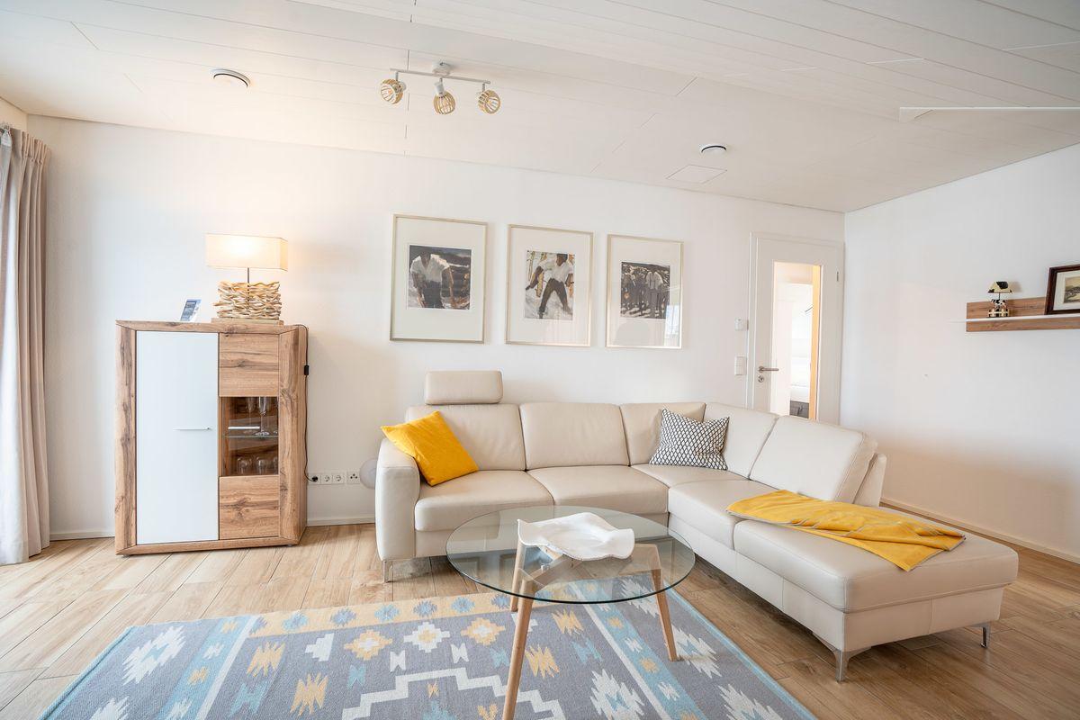 Alle drei Wohnungen haben zwei sep. Schlafräume, eine sep. Küche komplett ausgestattet auch mit Spülmaschine, ein gemütliches Wohnzimmer mit großer Couchgarnitur, Tageslicht-Badezimmer und ein zweites sep. WC.