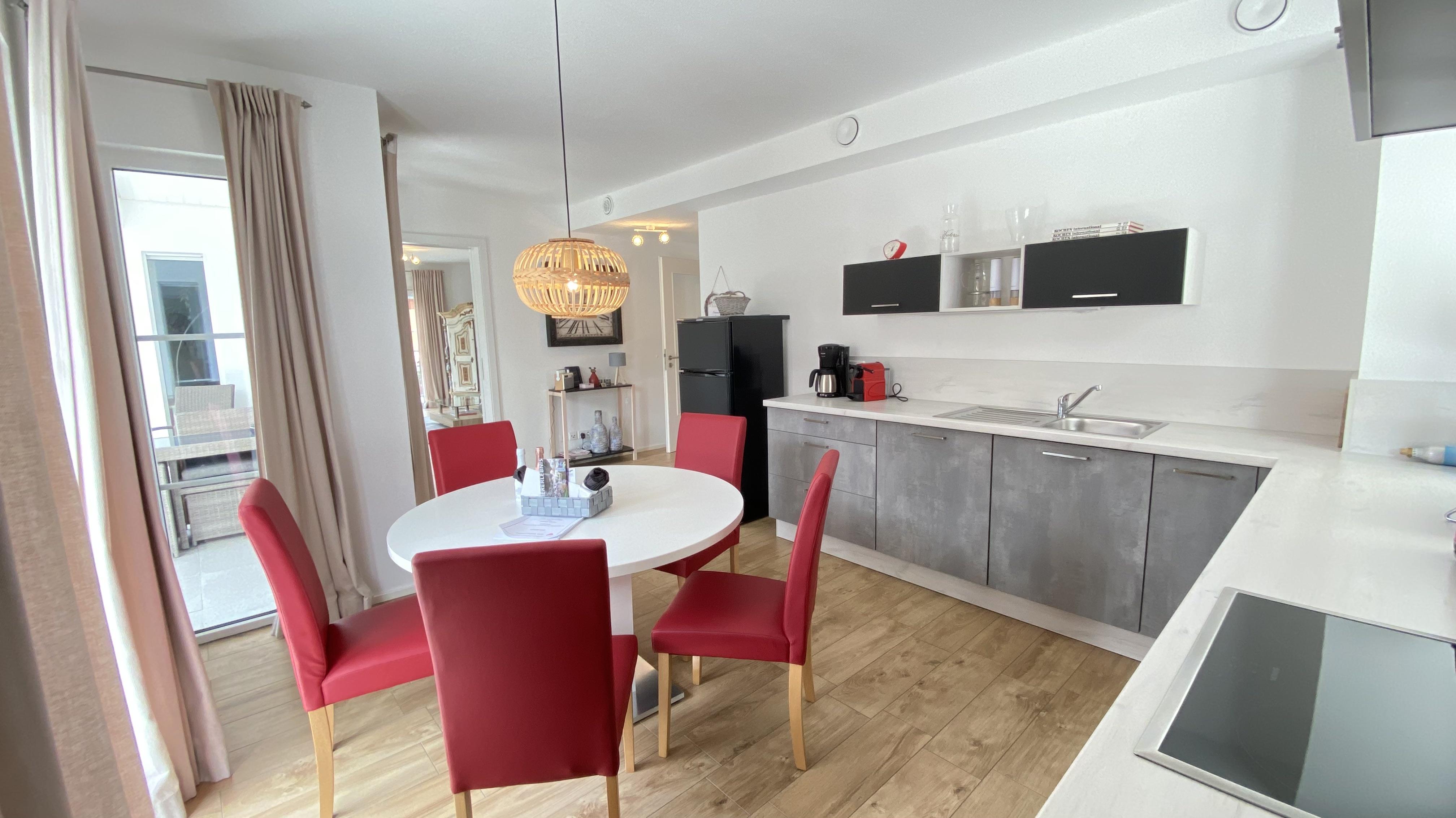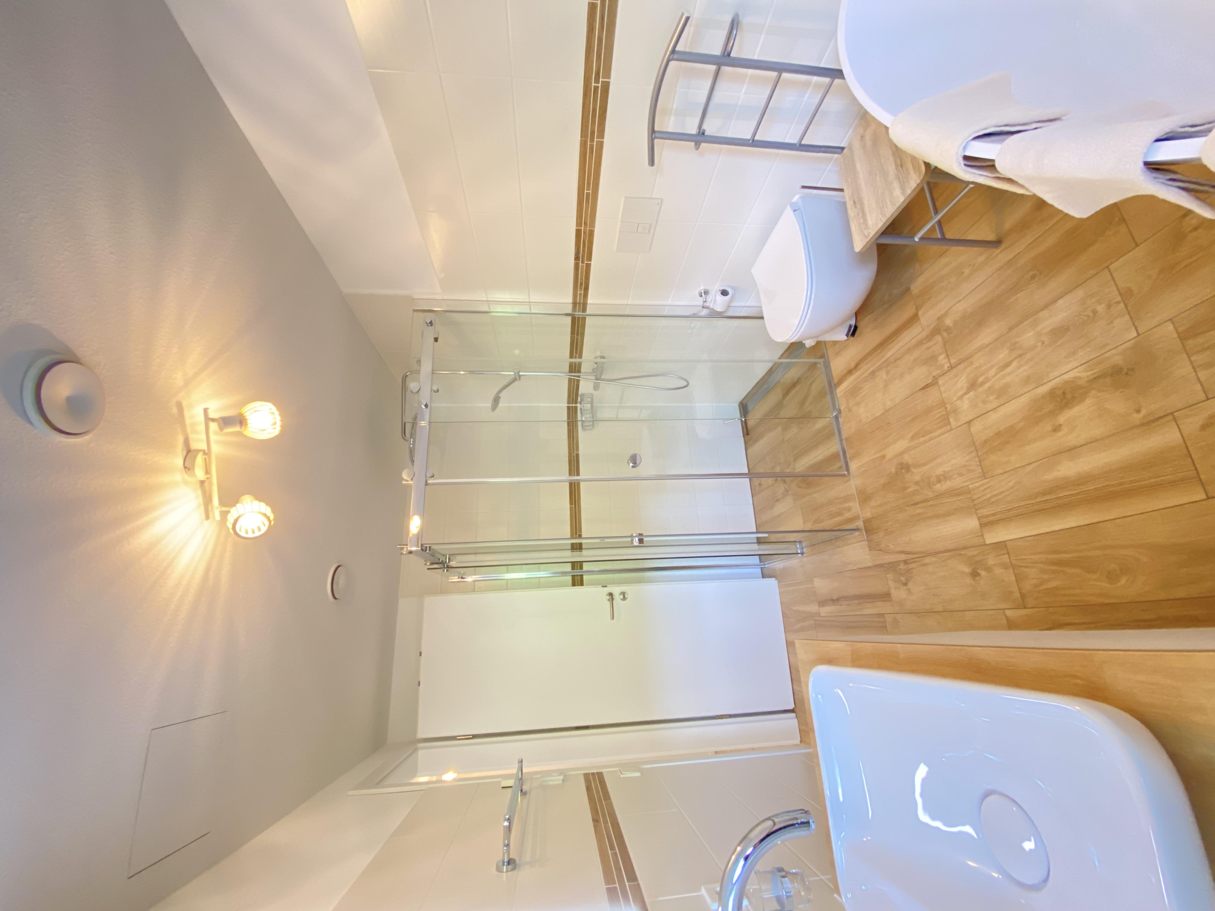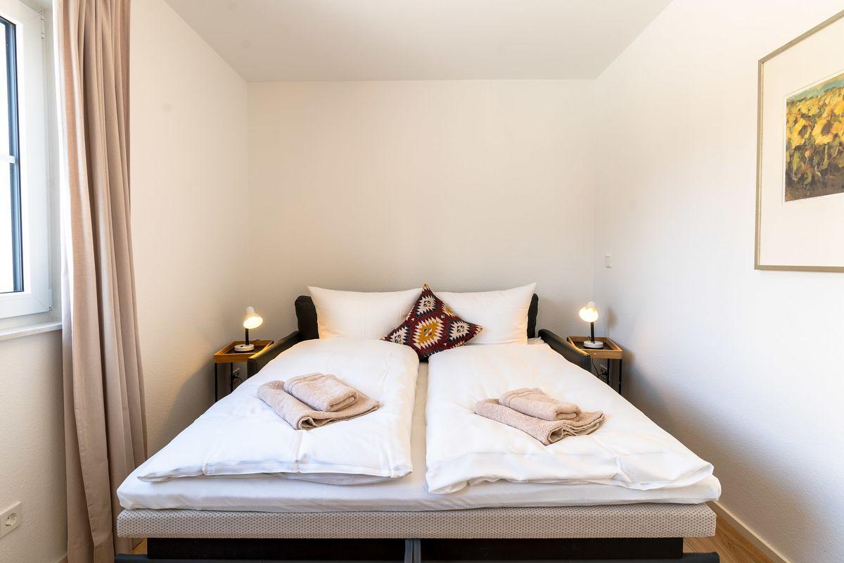 Alle drei Wohnungen haben zwei sep. Schlafräume, eine sep. Küche komplett ausgestattet auch mit Spülmaschine, ein gemütliches Wohnzimmer mit großer Couchgarnitur, Tageslicht-Badezimmer und ein zweites sep. WC.