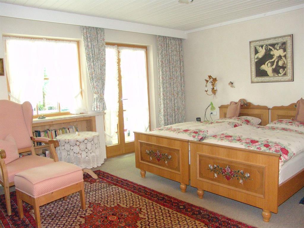 Auf einer Ebene liegen 2 Wohnungen für je 2 Pers. Ein Zimmer für eine Person mit extra Bad kann zugebucht werden zu 25€ pro Nacht. Unsere Wohnung Alpenrosenköpfle für 4 Pers. liegt Sudterrain mit eigenem Eingang und Terrasse.