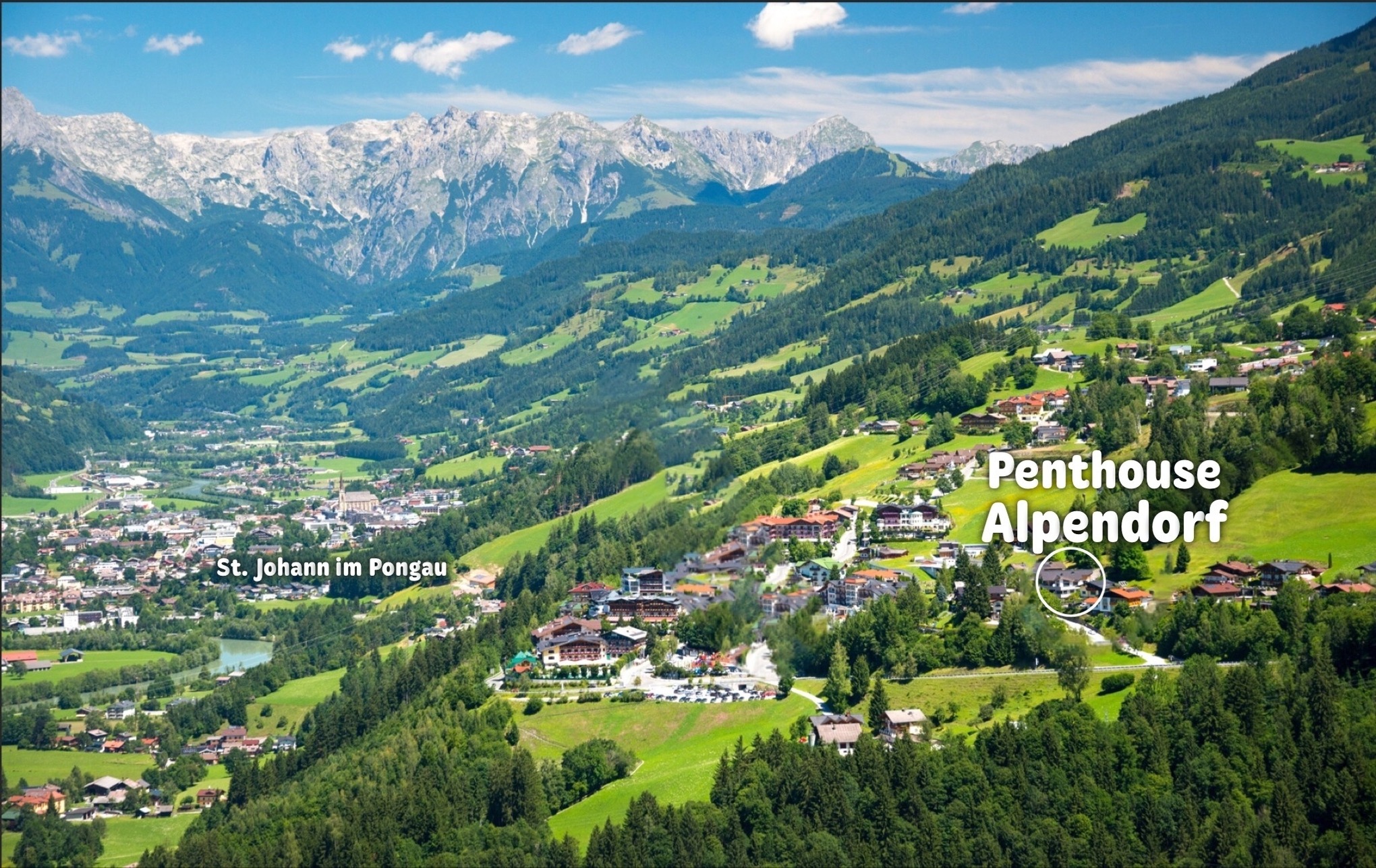 Unsere luxuriöse Ferienwohnung, das Penthouse Alpendorf befindet sich im beliebten St. Johann im Pongau und bietet auf 120 qm bis zu 10 Personen reichlich Platz. Ein exklusives Feriendomizil in einzigartiger Lage, ideal für Ihren Sommer- & Skiurlaub im Salzburgerland.