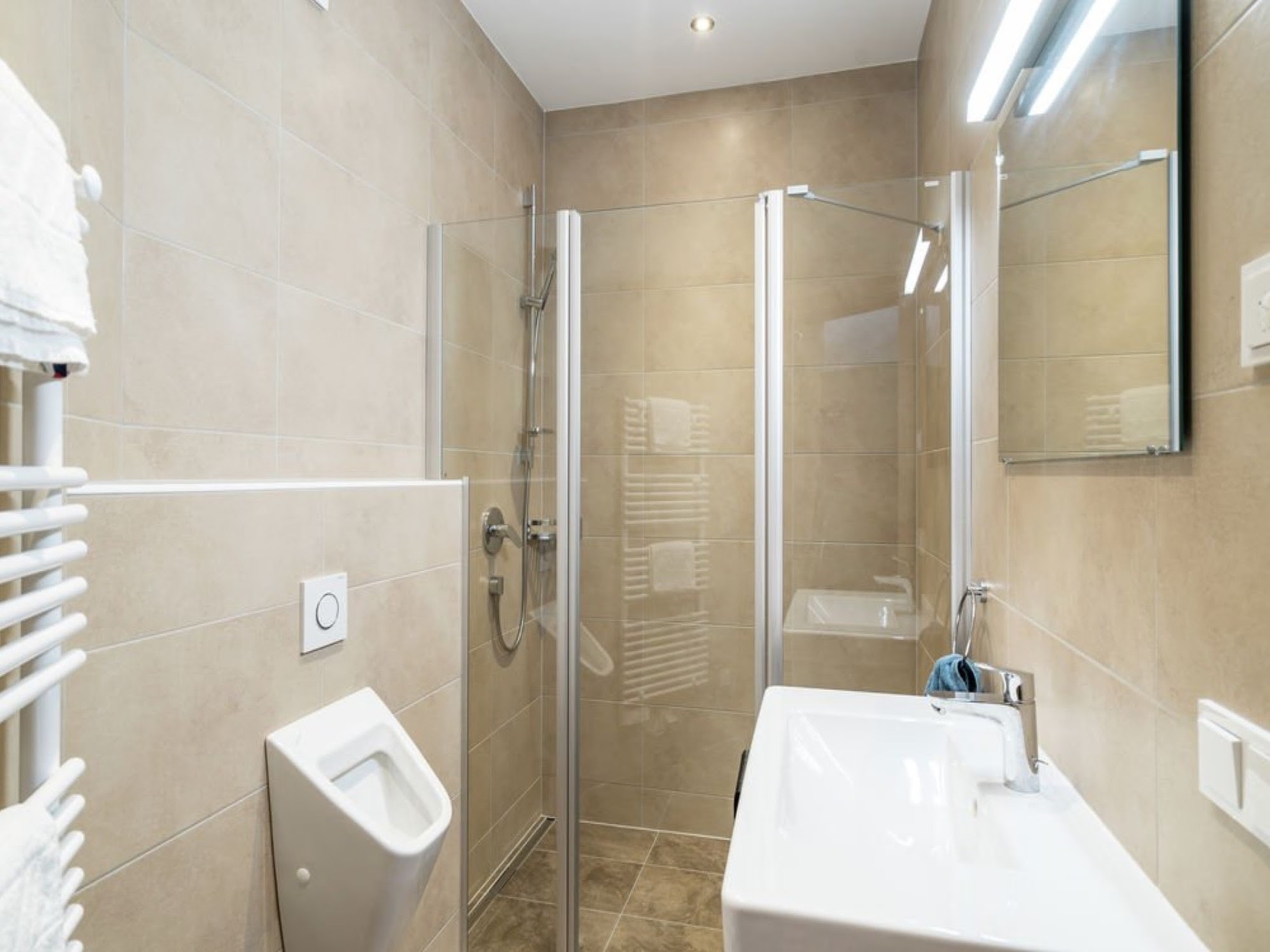 Die Ferienwohnung verfügt über 3 adäquate Duschbäder mit WC. Die Gemeinschaftssauna des Hauses können Sie gegen eine geringe Gebühr nutzen.