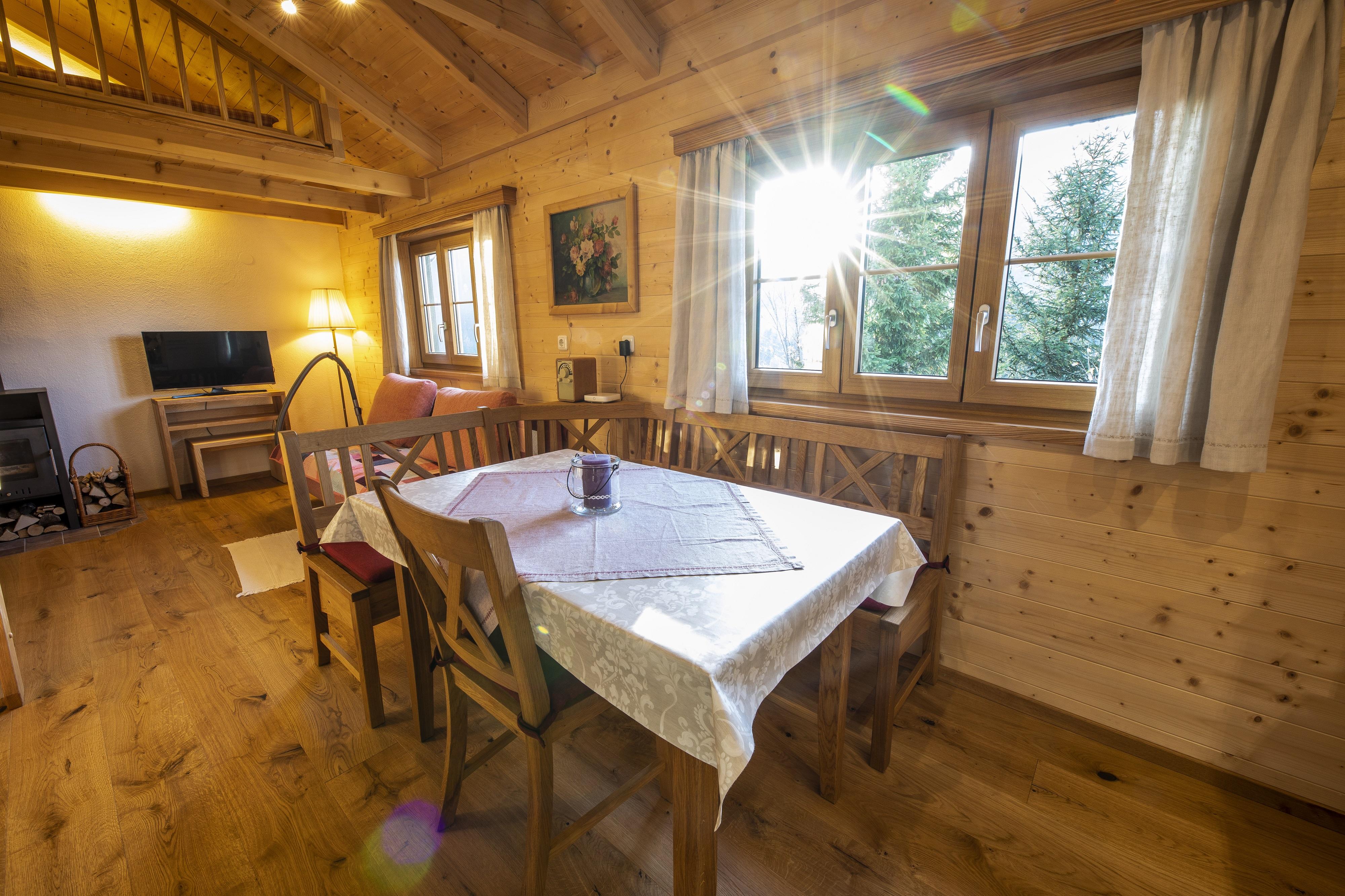 Die Ferienhütte Sonnreith befindet sich in ruhiger Lage am Sonnenhang neben einigen Nachbarhäusern in herrlicher Aussichtslage.