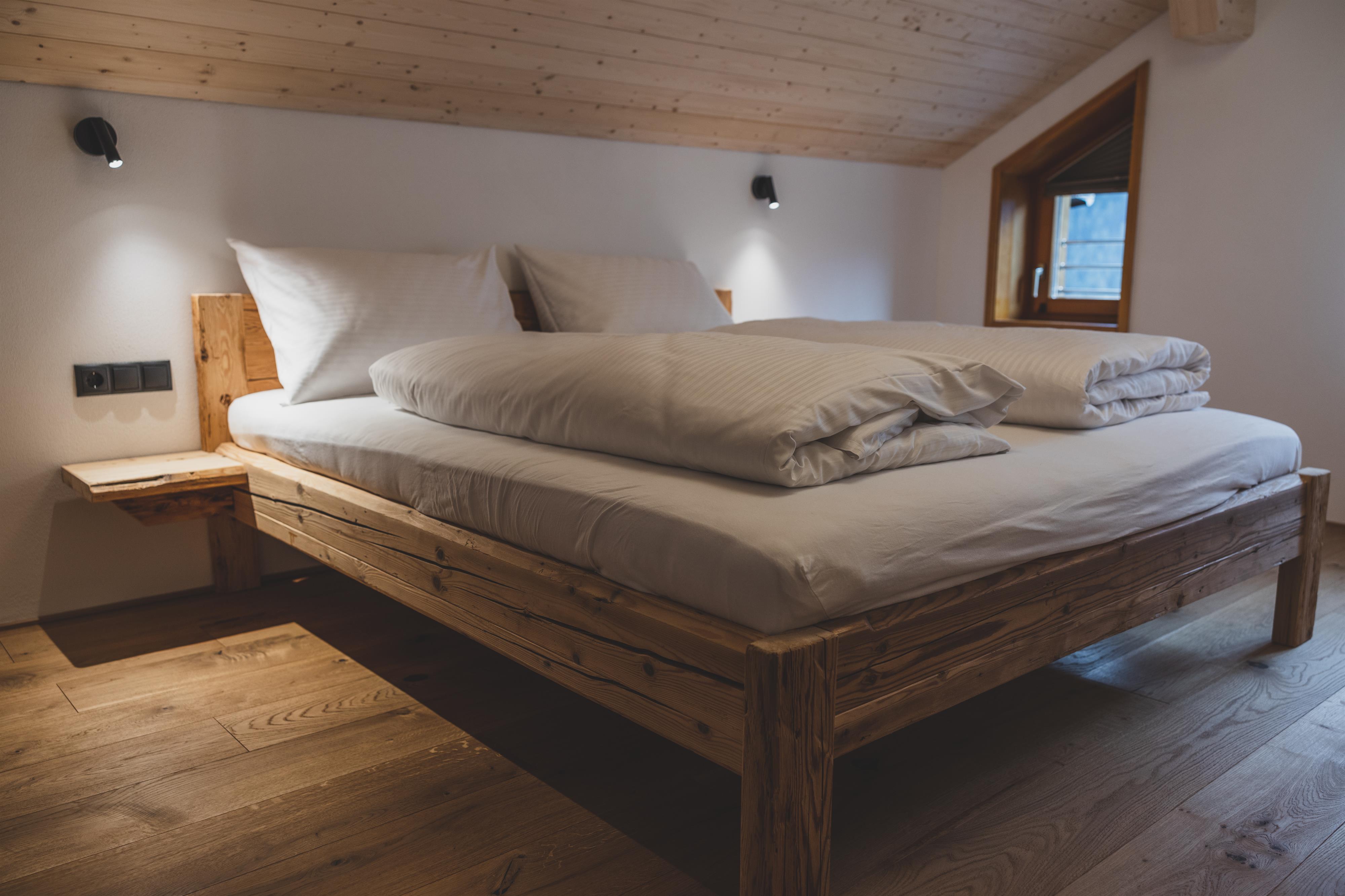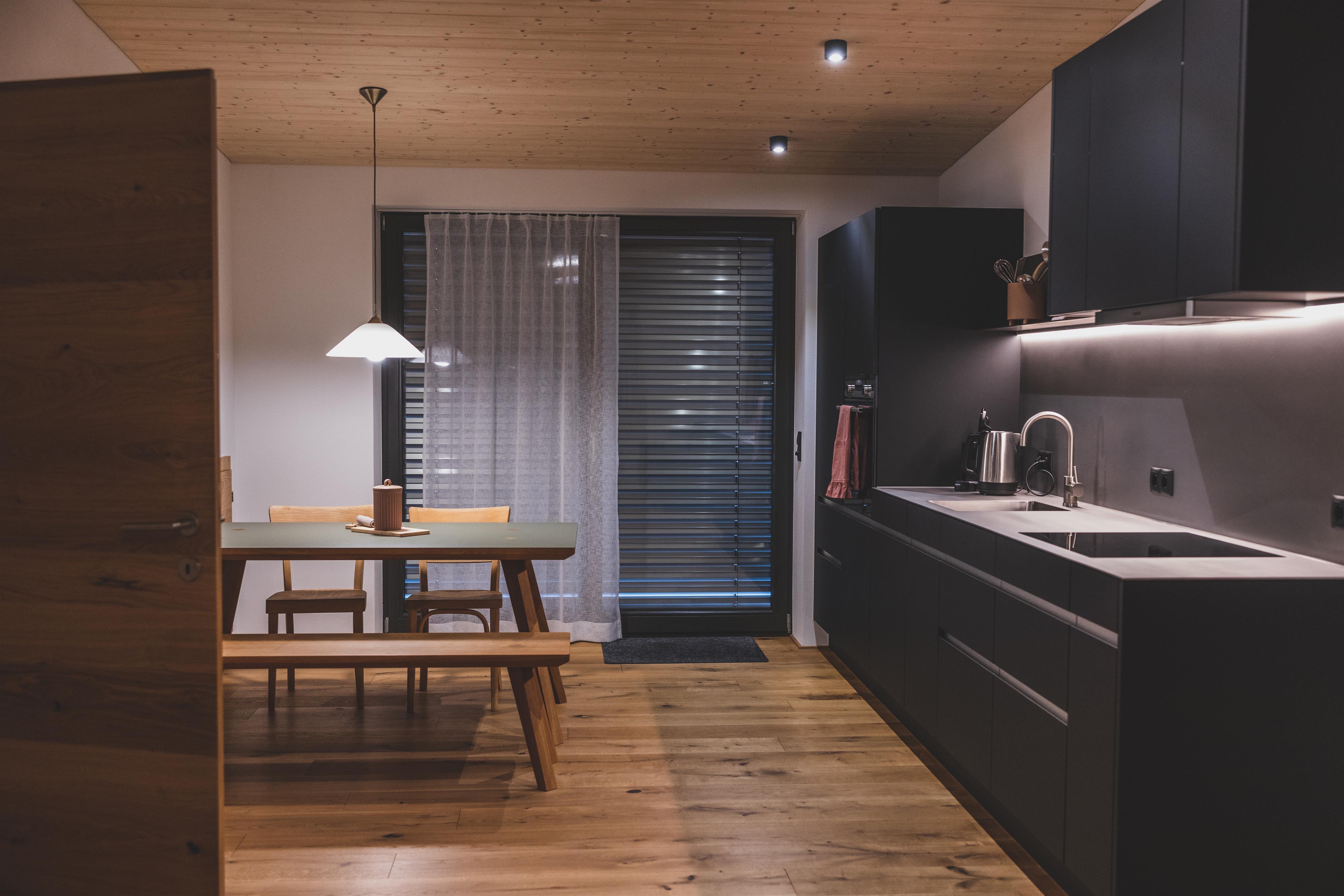 Im Montafonerhaus wurden in Wohn- und Schlafzimmern der ursprüngliche Stil des Hauses erhalten und revitalisiert, Küche und Badezimmer wurden modern und hochwertig gestaltet. Dadurch entstand ein interessanter Kontrast zwischen Alt und Neu.