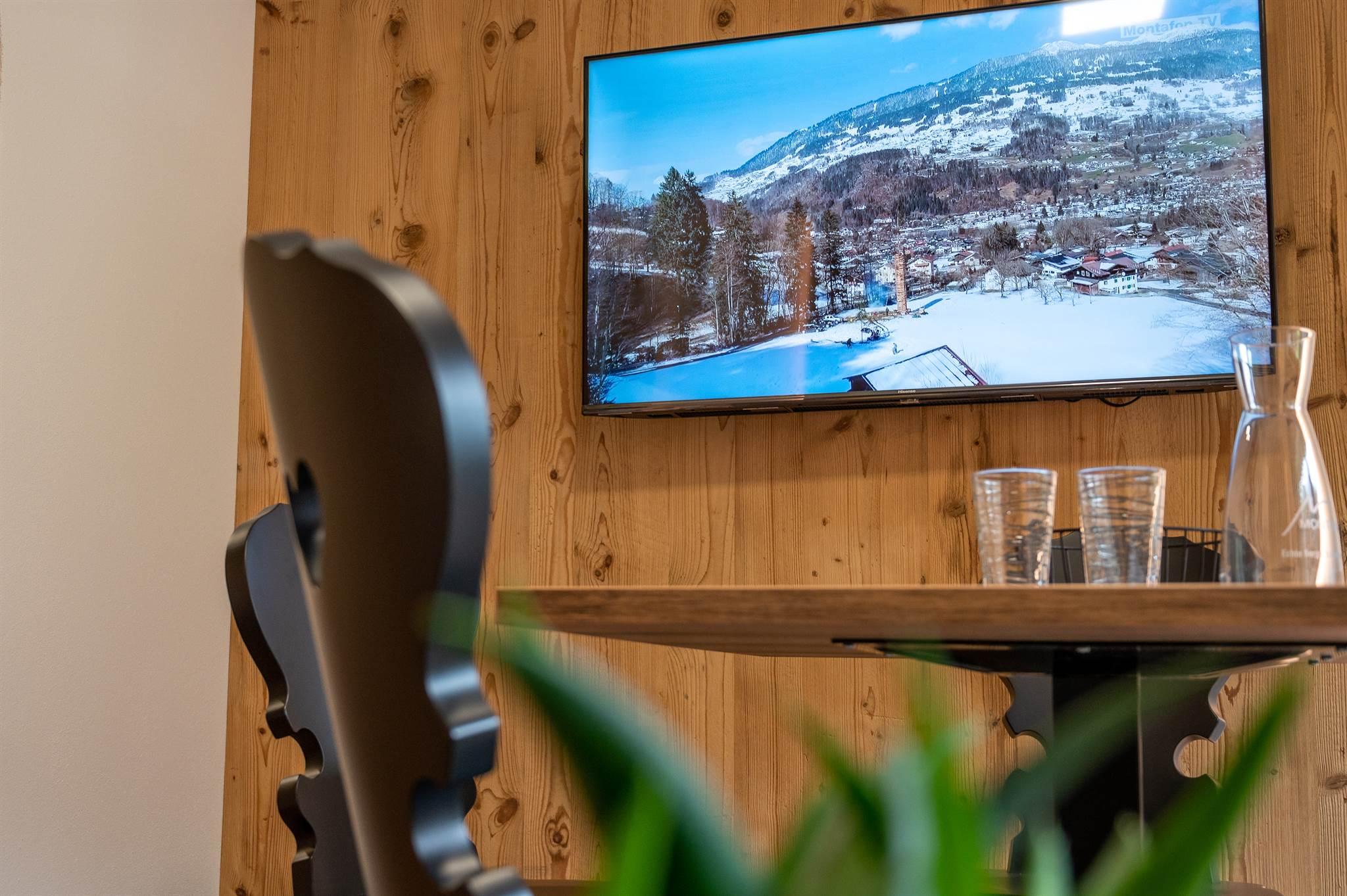 Unser im 2. OG gelegenes StandardPLUS DZ strahlt durch seine aus viel Holz bestehende Ausstattung, Wärme und Behaglichkeit aus. Durch die große Dachgaupe, genießt Du den Ausblick auf die Montafoner Berge. Das modern sanierte Badezimmer verfügt über Dusche, WC, Fön und hochwertige, regionale Kosmetikprodukte. Technische Annehmlichkeiten, wie Flat-Screen TV, Safe und WLAN runden den Wohnkomfort ab.