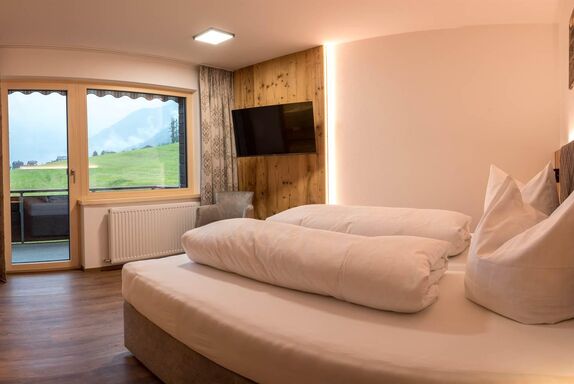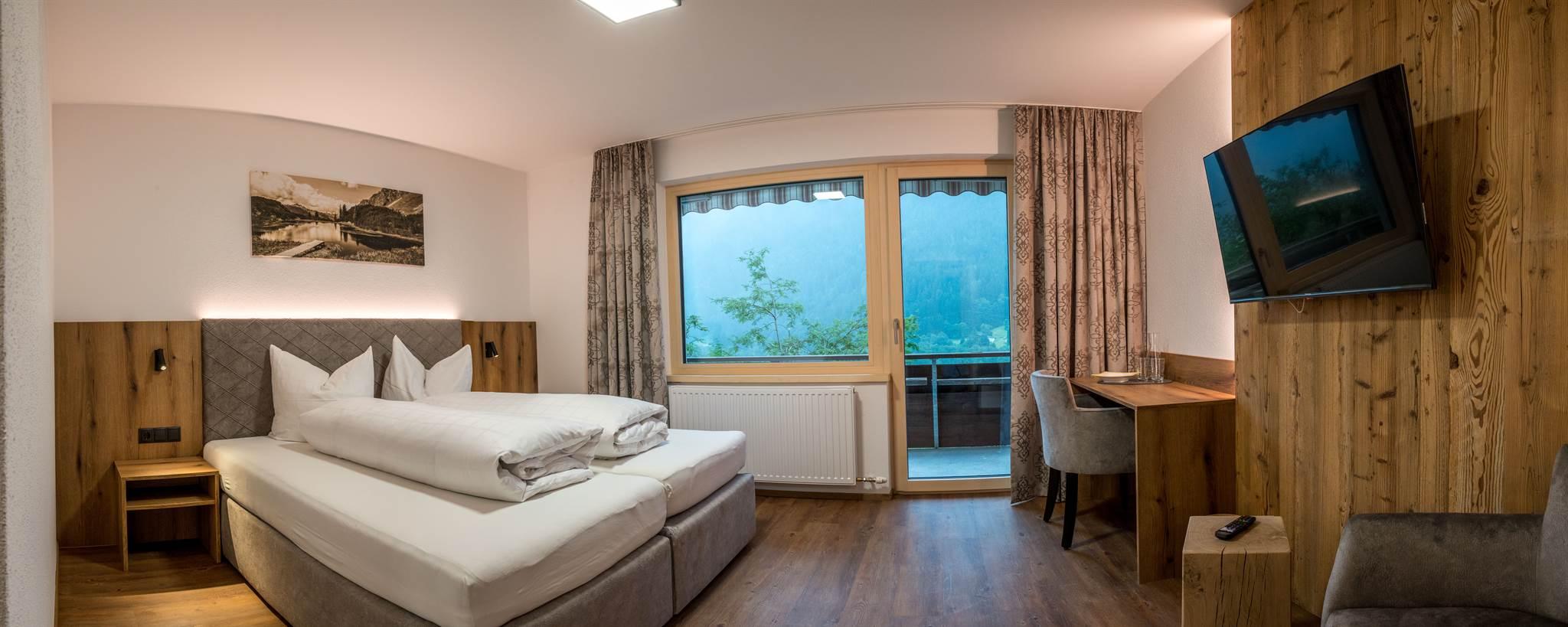 Die ländlich-modern ausgestattete Suite besteht aus einem Wohnraum mit Sofa, Flat-Screen TV und einer Sitzecke. Der Schlafraum besticht durch gemütliche Betten und herrlicher Aussicht auf die Montafoner Bergwelt. Annehmlichkeiten, wie Safe und WLAN runden den Wohnkomfort in unserer Suite ab. WC und Badezimmer sind voneinander getrennt und verfügen über Fön und regionale Kosmetikprodukte.