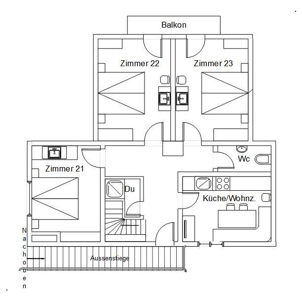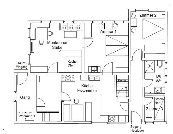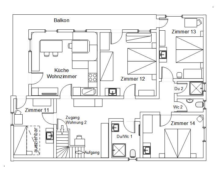 Je nach Bedarf kann der Zugang von der Wohnung 2 betreten werden oder nicht.