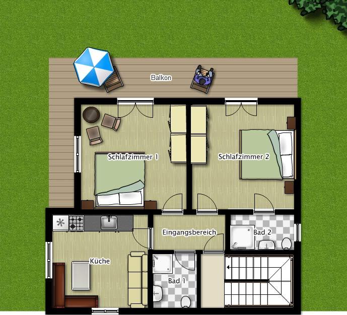 Die Ferienwohnung St. Gallenkirch verfügt über insgesamt 2 getrennte Schlafräume, 2 Dusche/WCs, sowie einen Wohn-Essbereich, in welcher Sie eine voll ausgestattete Küche vorfinden. Einen großen Balkon mit Blick in den Garten runden die komplett neu eingerichtete, rund 55m² Wohnung ab.