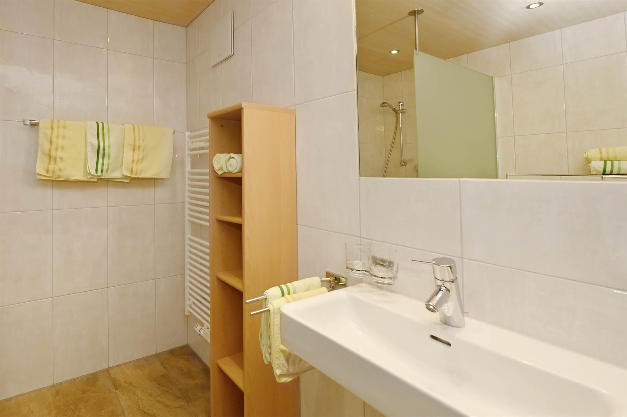 Die Ferienwohnung im Erdgeschoss besteht aus 2 Dreibettzimmer, 1 Zweibettzimmer, 2 schönen großen Bädern mit Doppelwaschbecken, DU/WC, einem gemütlichen Wohnzimmer mit Schlafcouch/TV, einer freundlichen Küche mit bequemer Sitzgruppe und einer schönen Sonnenterrasse. Auch die Ausstattung lässt keine Wünsche offen: Fußbodenheizung, Geschirrspüler, Kühl- bzw. Gefrierschrank, Backofen, u.v.m.