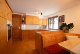 Wohnküche mit großer Eckbank, Ausziehcouch ( Doppelbett ), Sat-TV, Terrasse mit Gartenzugang.