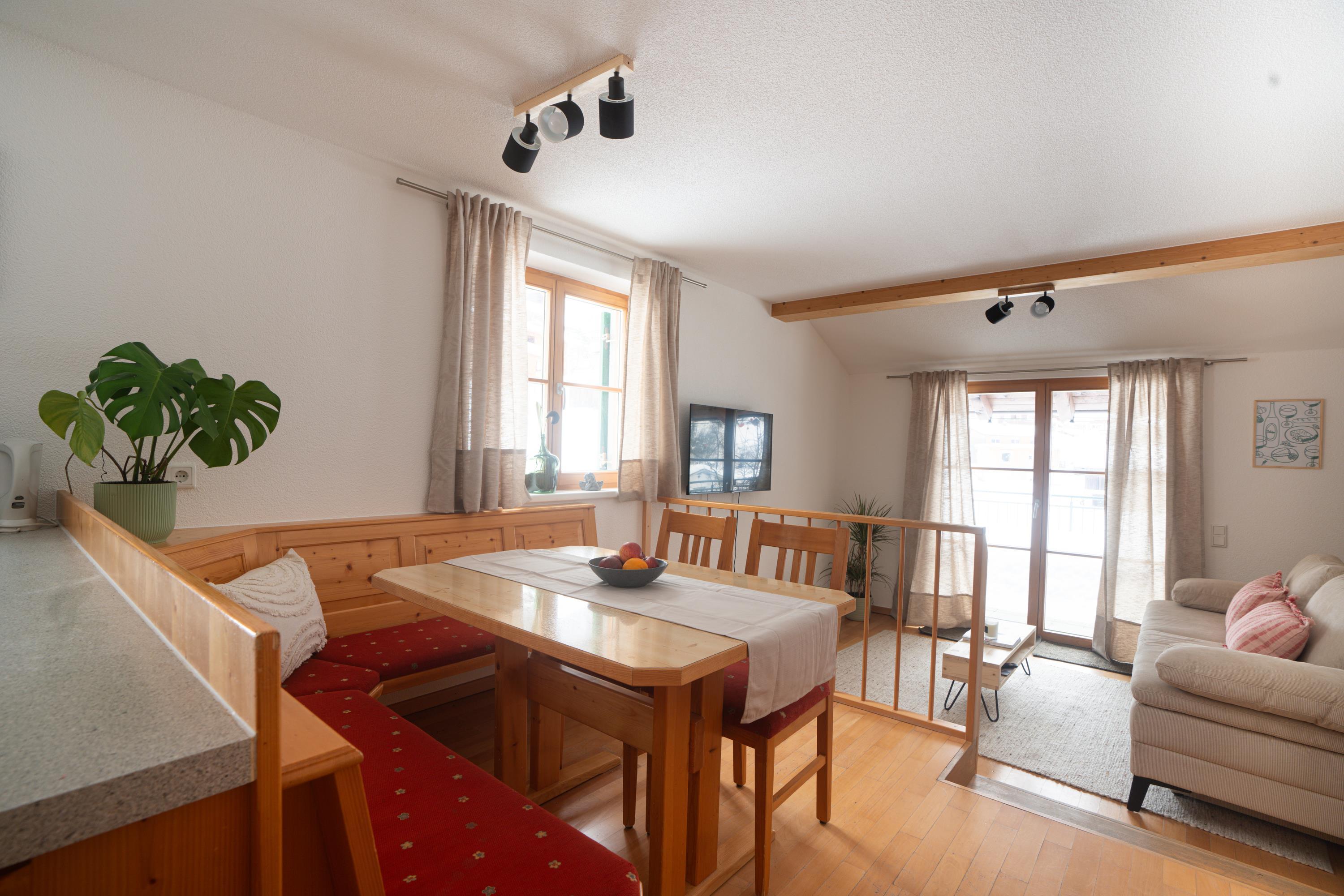 Die gemütliche Ferienwohnung Lobspitze ist 54 m² groß.Großes Schlafzimmer, neu eingerichtet, Leseecke, zweites sehr kleines Schlafzimmer mit Stockbett für 2 Kinder , direkt neben Elternschlafz., großes Badezimmer mit Bad/WC,Föhn.