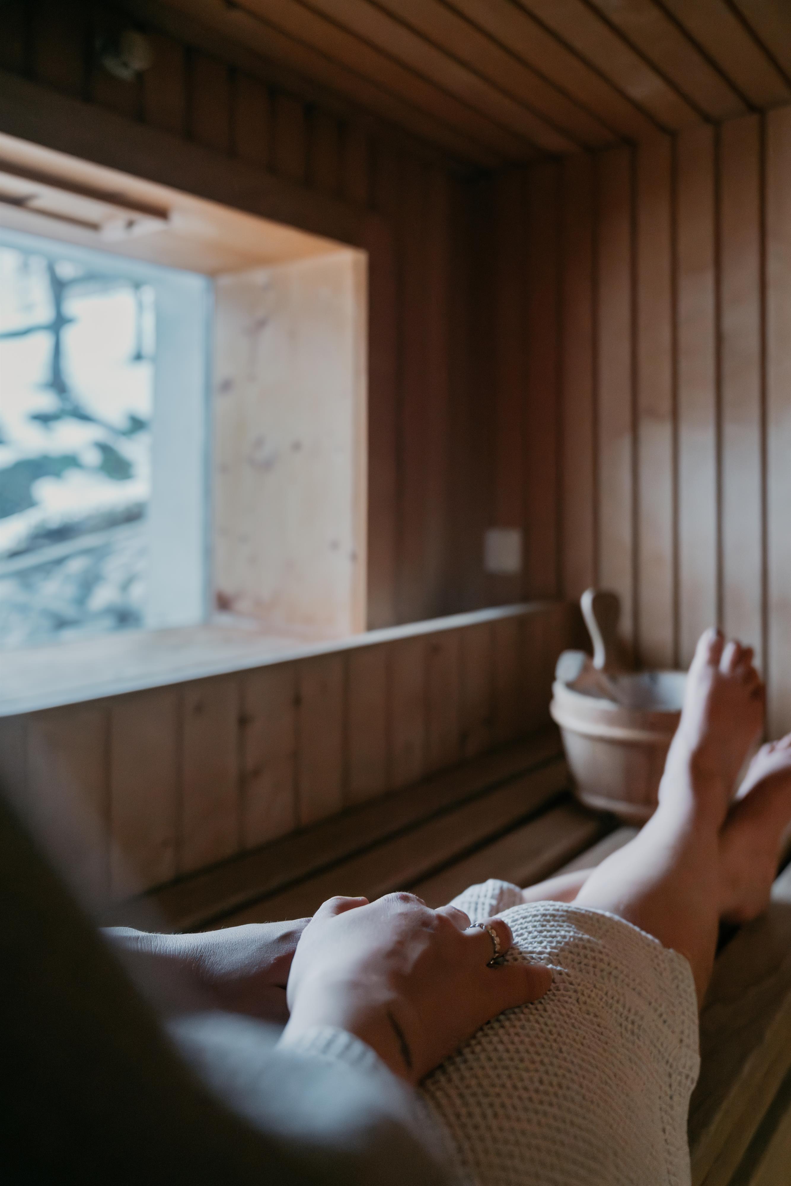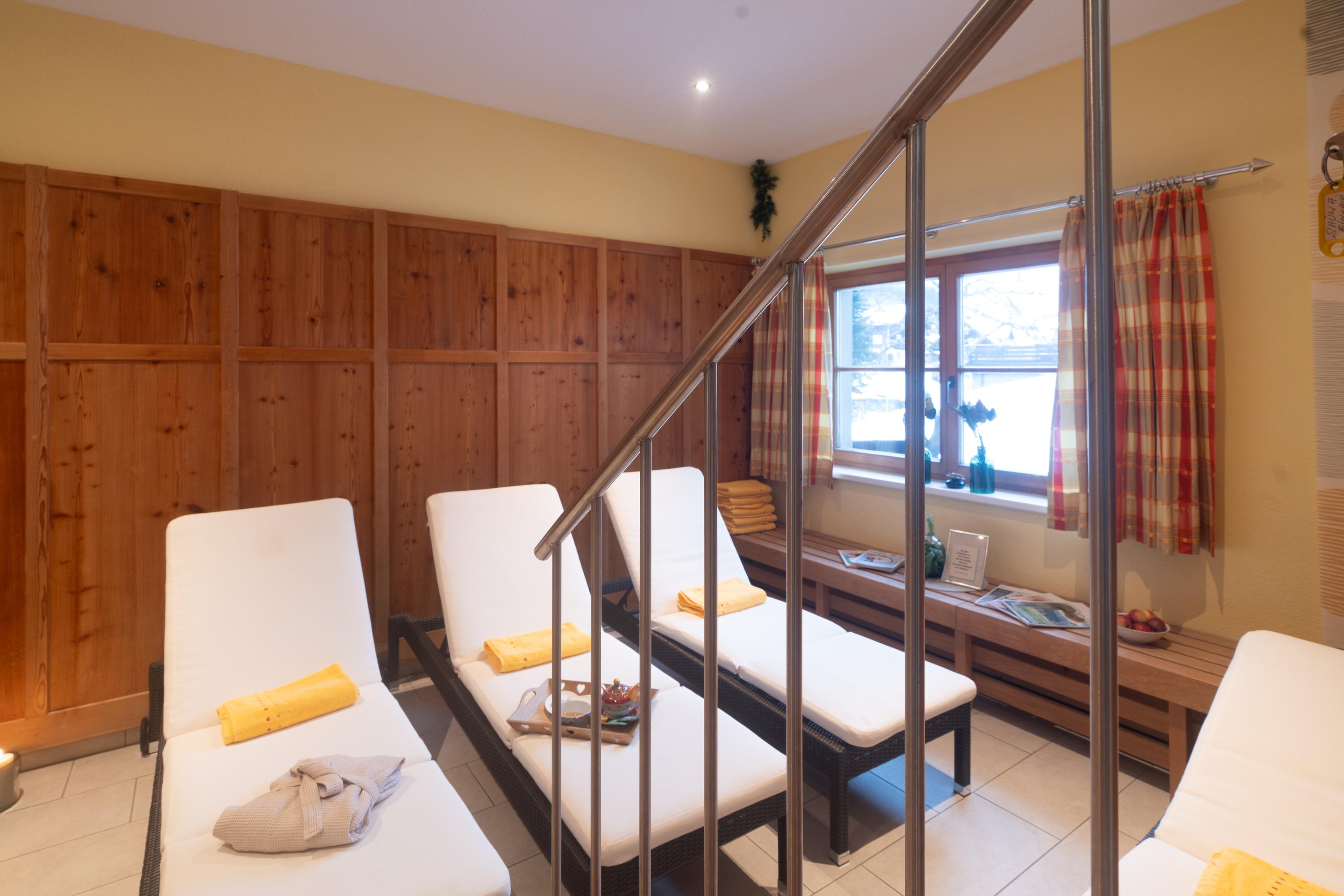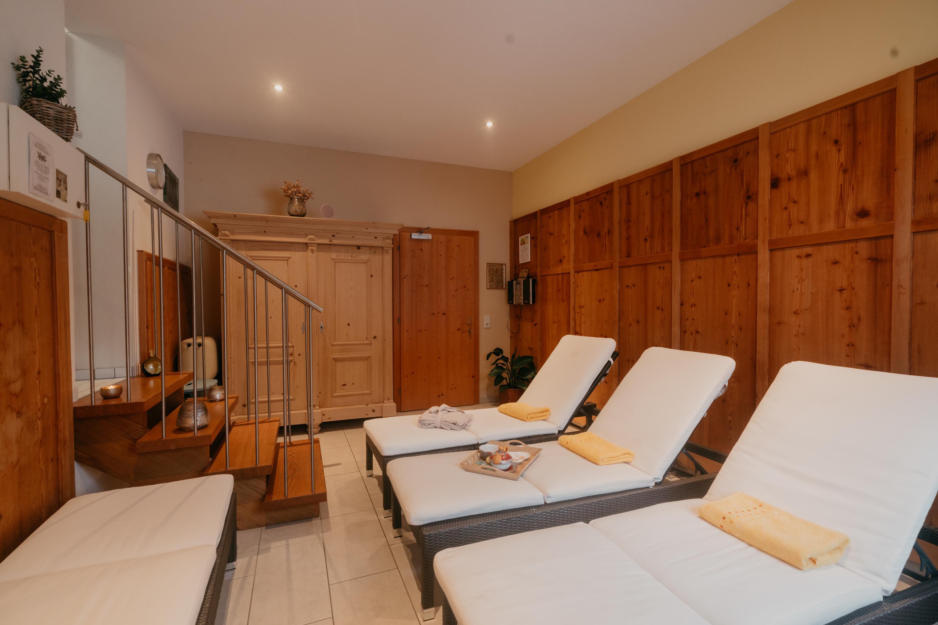 Sauna oder Kräuterdampfbad, Ruheraum.