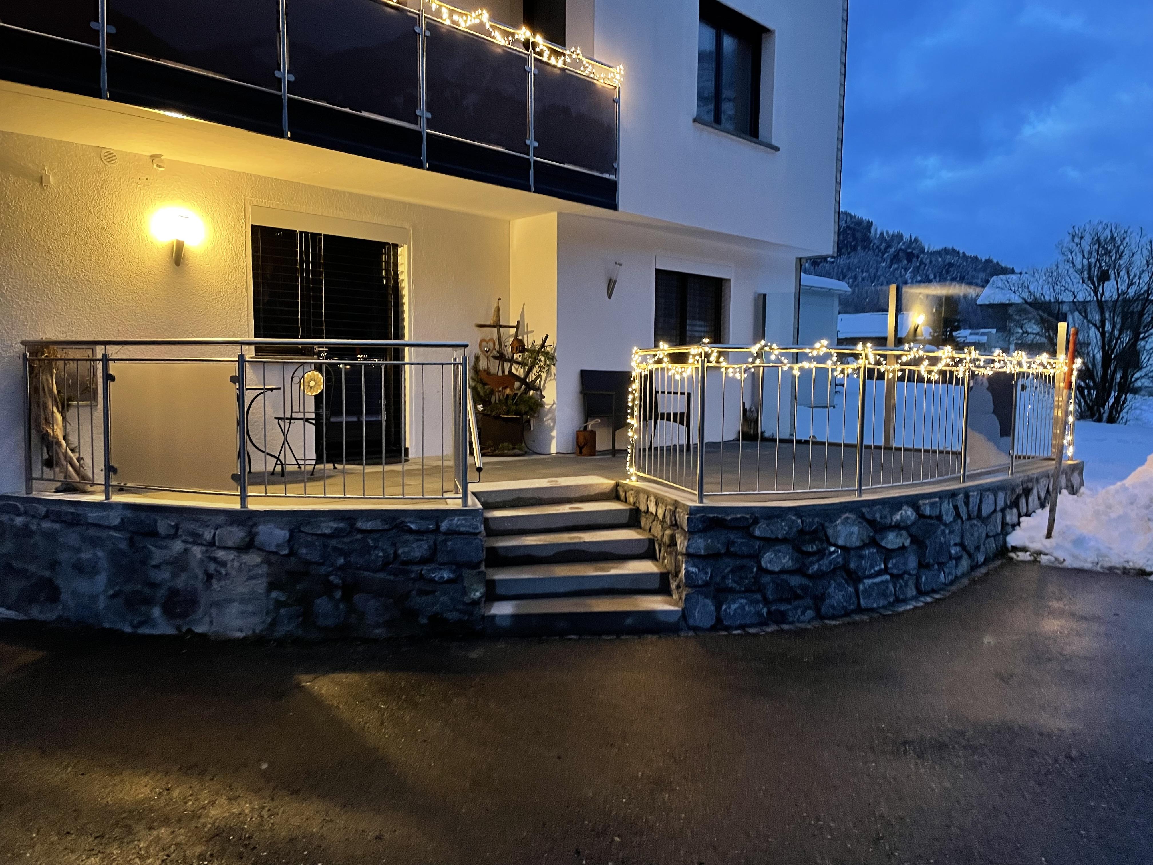 Unser Ferienwohnung ist frisch renoviert, sie ist ruhig aber doch zentral gelegen. In 10 Gehminuten erreichst Du das Dorfzentrum mit Lebensmittelgeschäft, Cafe, Restaurants und Sportgeschäft. Unsere Wohnung ist Sommer wie Winter mit dem Auto gut erreichbar. Die Parkplätze befinden sich direkt beim Haus. In fünf Minuten Fahrzeit erreichst Du die Golmerbahn, die Bushaltestelle erreichst Du in drei Gehminuten. Deine Ski kannst Du im Skiraum neben der Wohnung deponieren, für warme Füße sorgt unser Skischuhtrockner. Zudem ist unsere Ferienwohnung ganz in der Nähe der Langlaufloipe gelegen. Auch für Wander- und Kletterbegeisterte hat unsere Region einiges zu bieten. Von unzähligen Wanderwegen mit den schönsten Zielen, zu tollen Klettersteigen ist für jeden was dabei.
