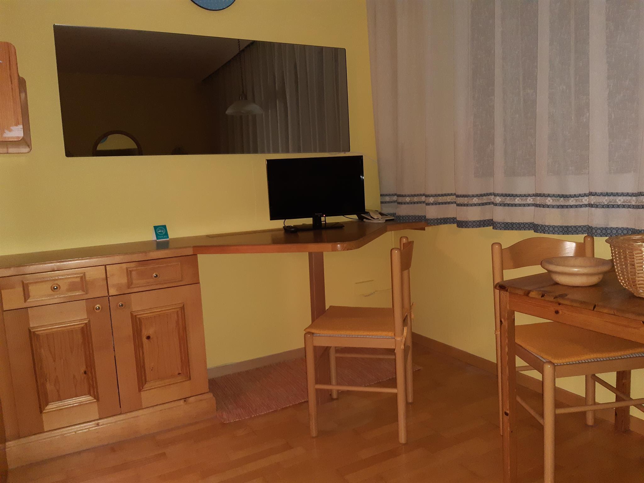 Kleines Studio im Aparthotel Alpine mit freier Hallenbad-, Sauna- und Fitnessraumbenutzung. Wohn-Schlafraum mit Doppelbett, Eßtisch, Schränke, Kabel-TV, Miniküche mit Spüle, Kühlschrank, Kochplatten, Wasserkocher, Kaffeemaschine, Dusche, WC. Inklusivleistungen: Eintritt Hallenbad, Sauna, Parkplatz, Skiabteil. Bettwäsche, Handtücher. Direkter Pistenzugang, direkt an der Bushaltestelle. Restaurant im Hotel Alpine.